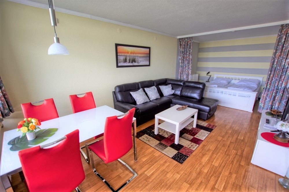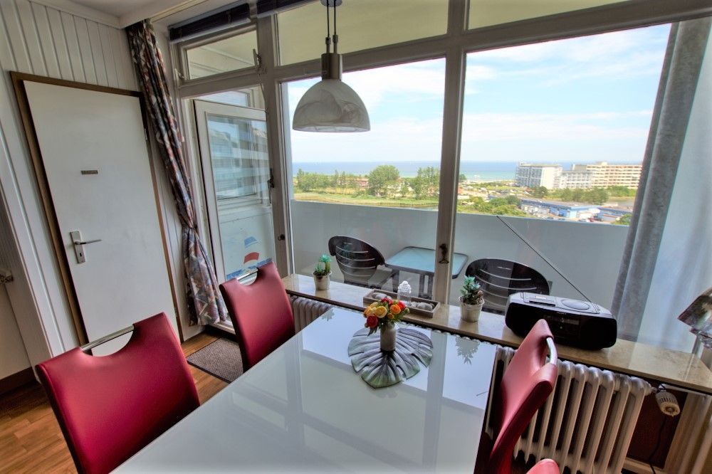Die Wohnung befindet sich im Haus D, in der 8. Etage, mit Balkon zur Nordseite und Ostseeblick über den kleinen Binnensee.
