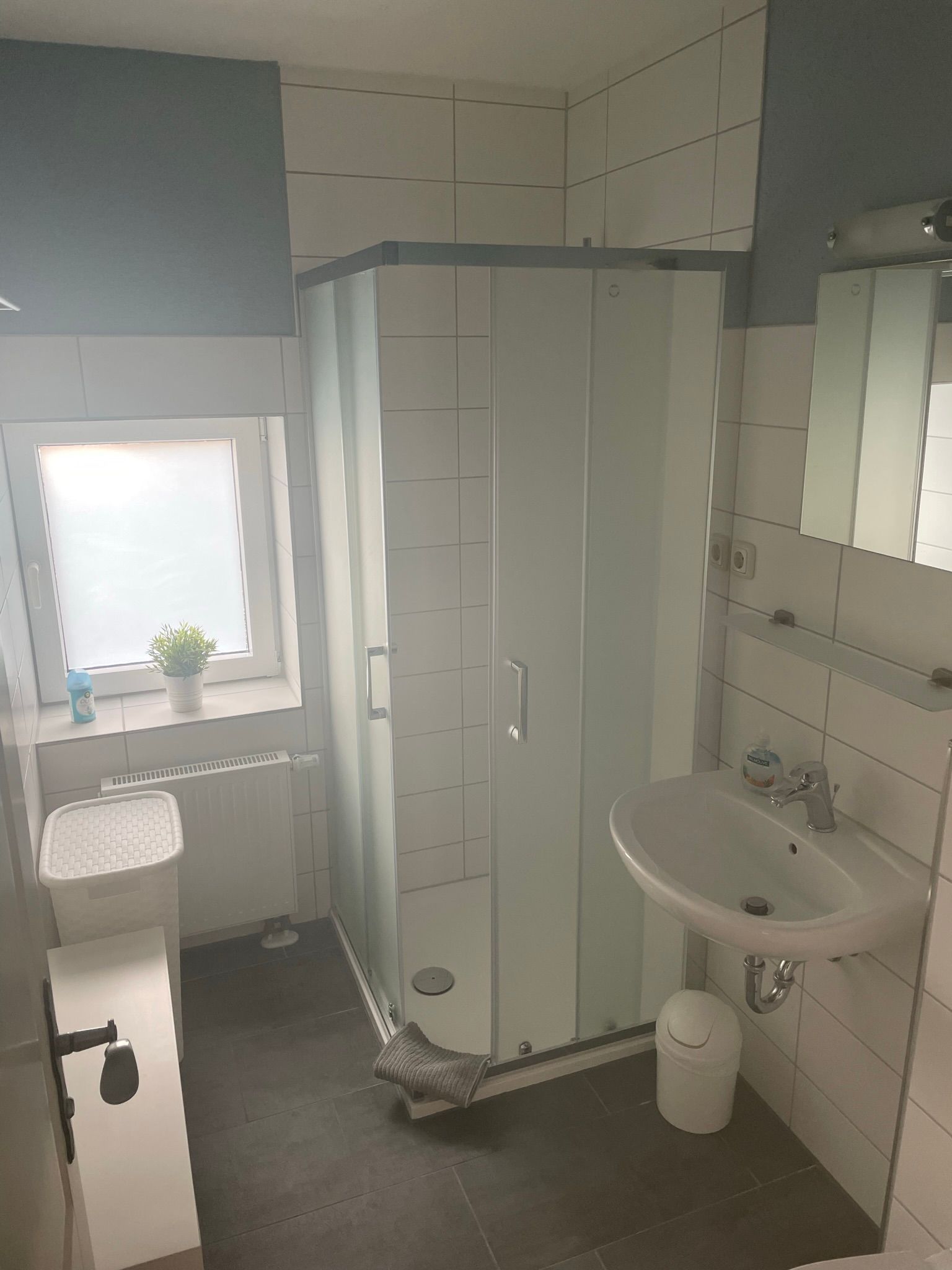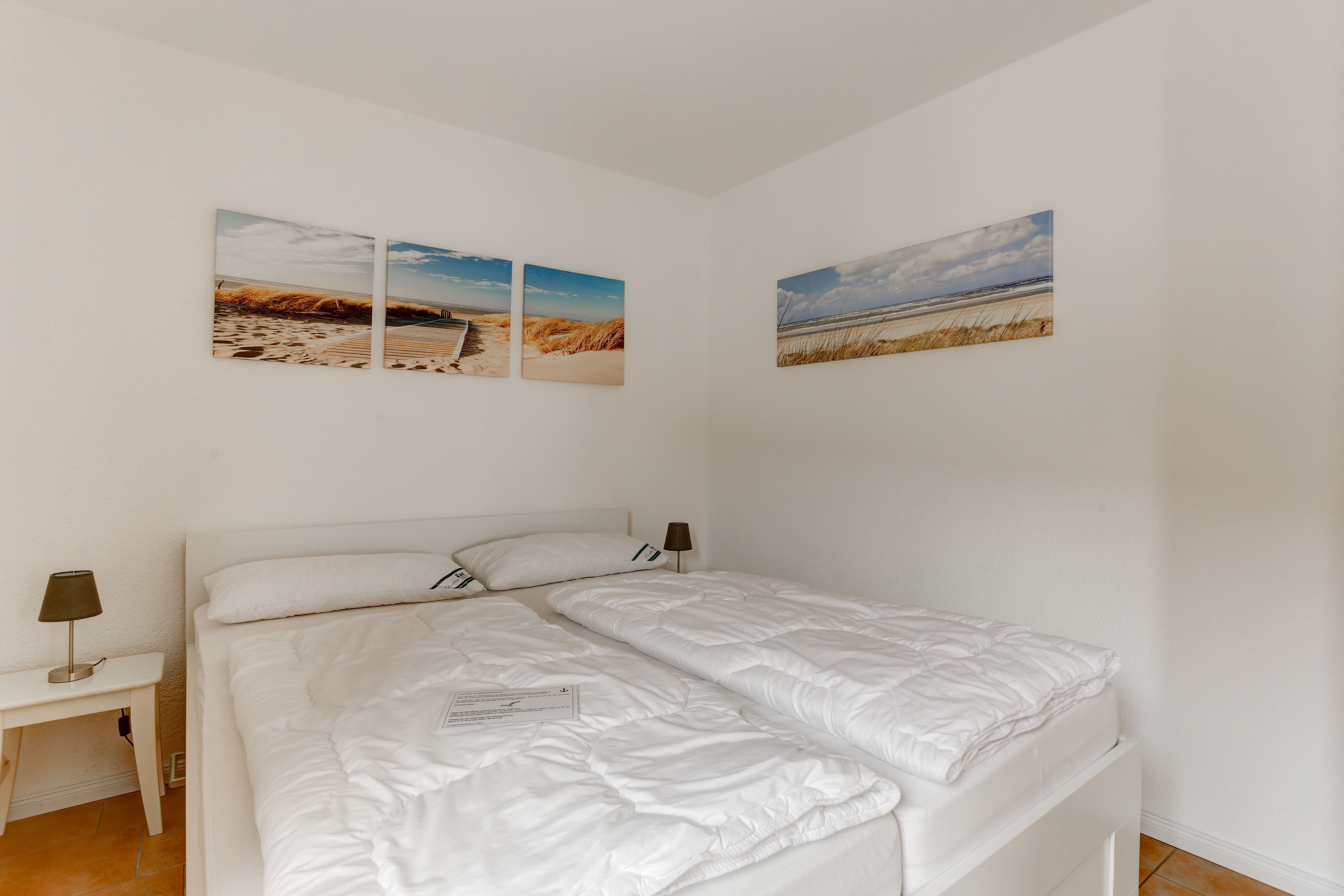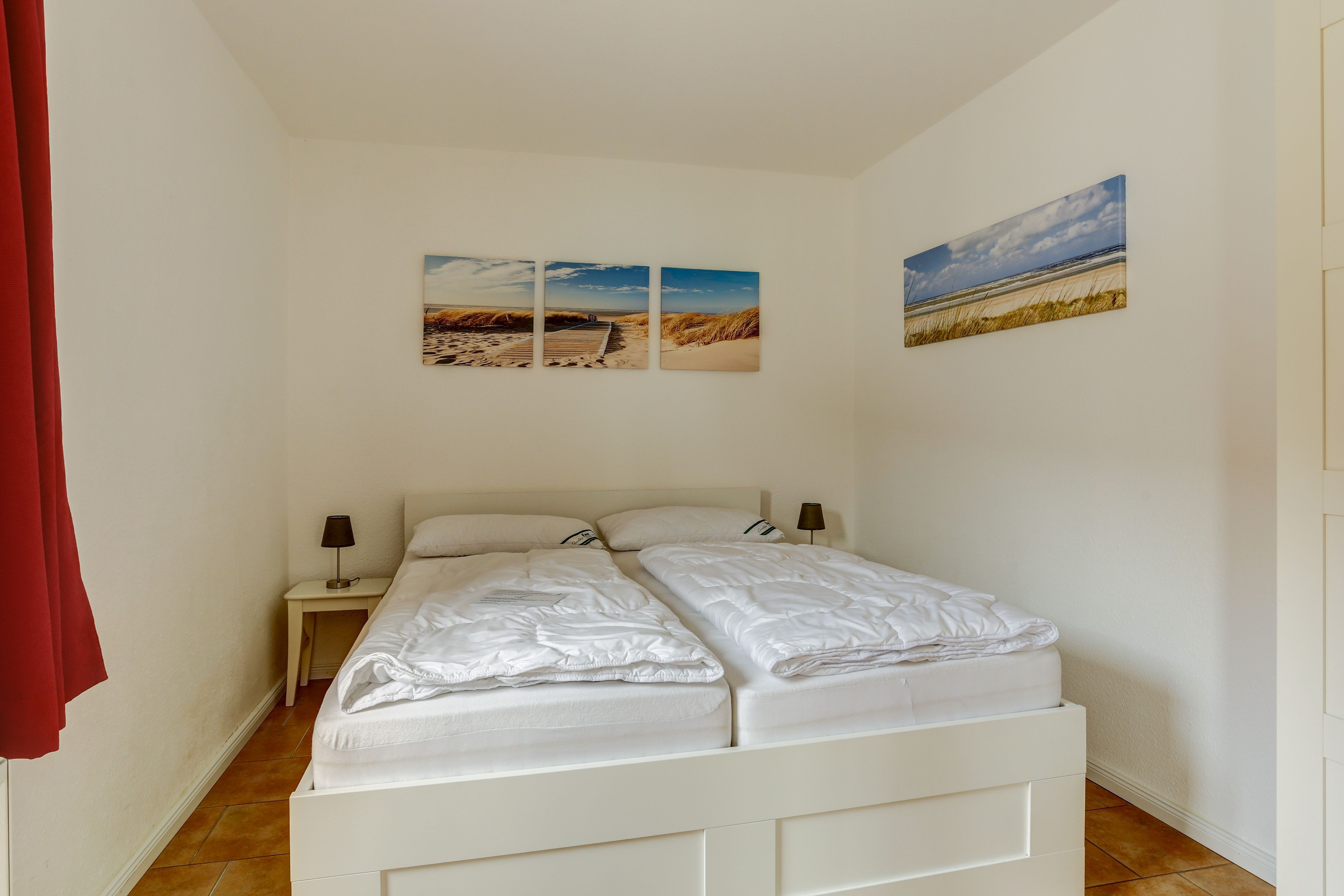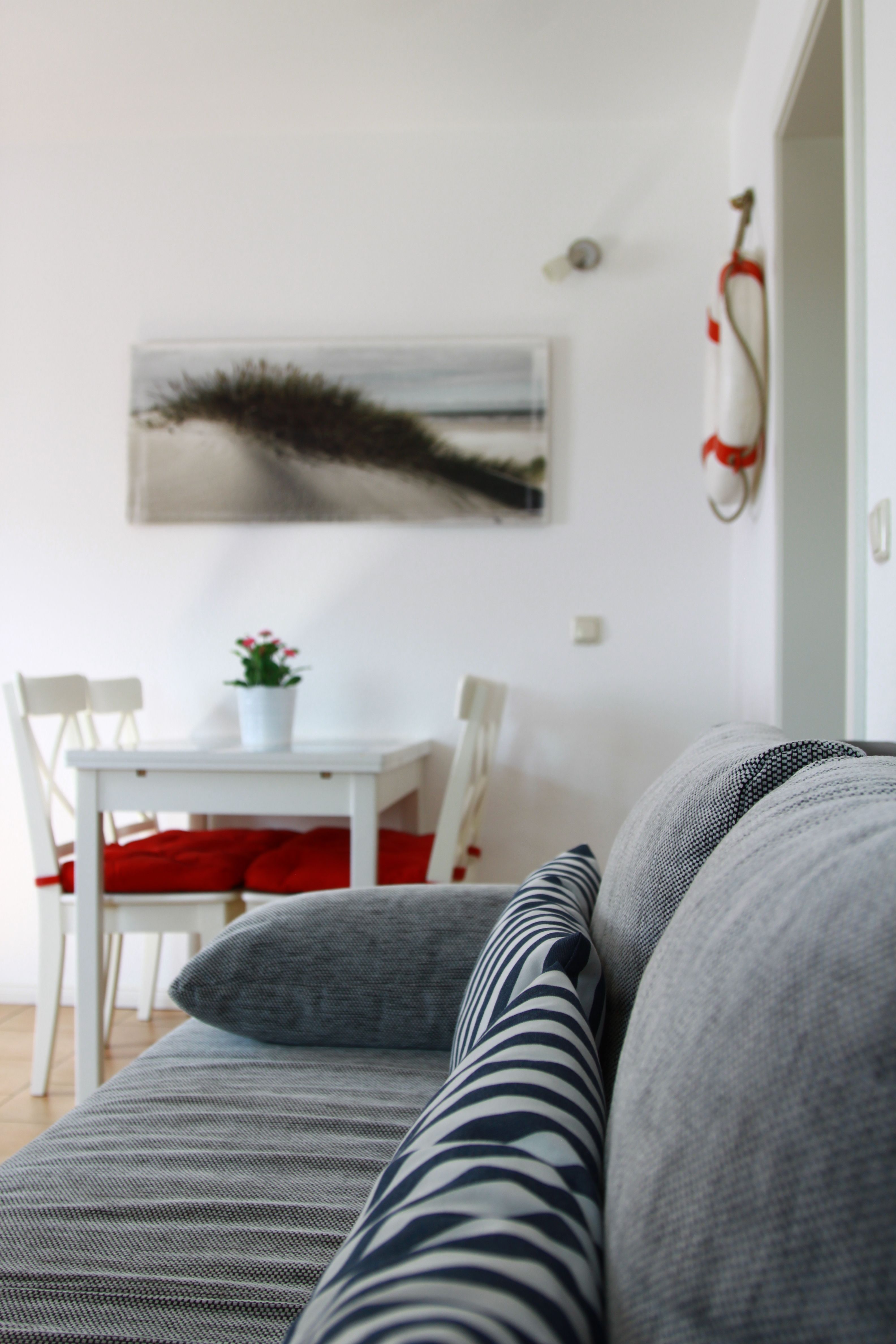 Die Wohnung Hafenblick verfügt über einen kleinen Eingangsbereich, ein Wohnzimmer (mit Schlafsofa, ein Schlafzimmer (mit Doppelbett), eine umfassend ausgestattete Küche und ein Bad mit Dusche.
