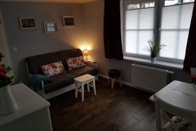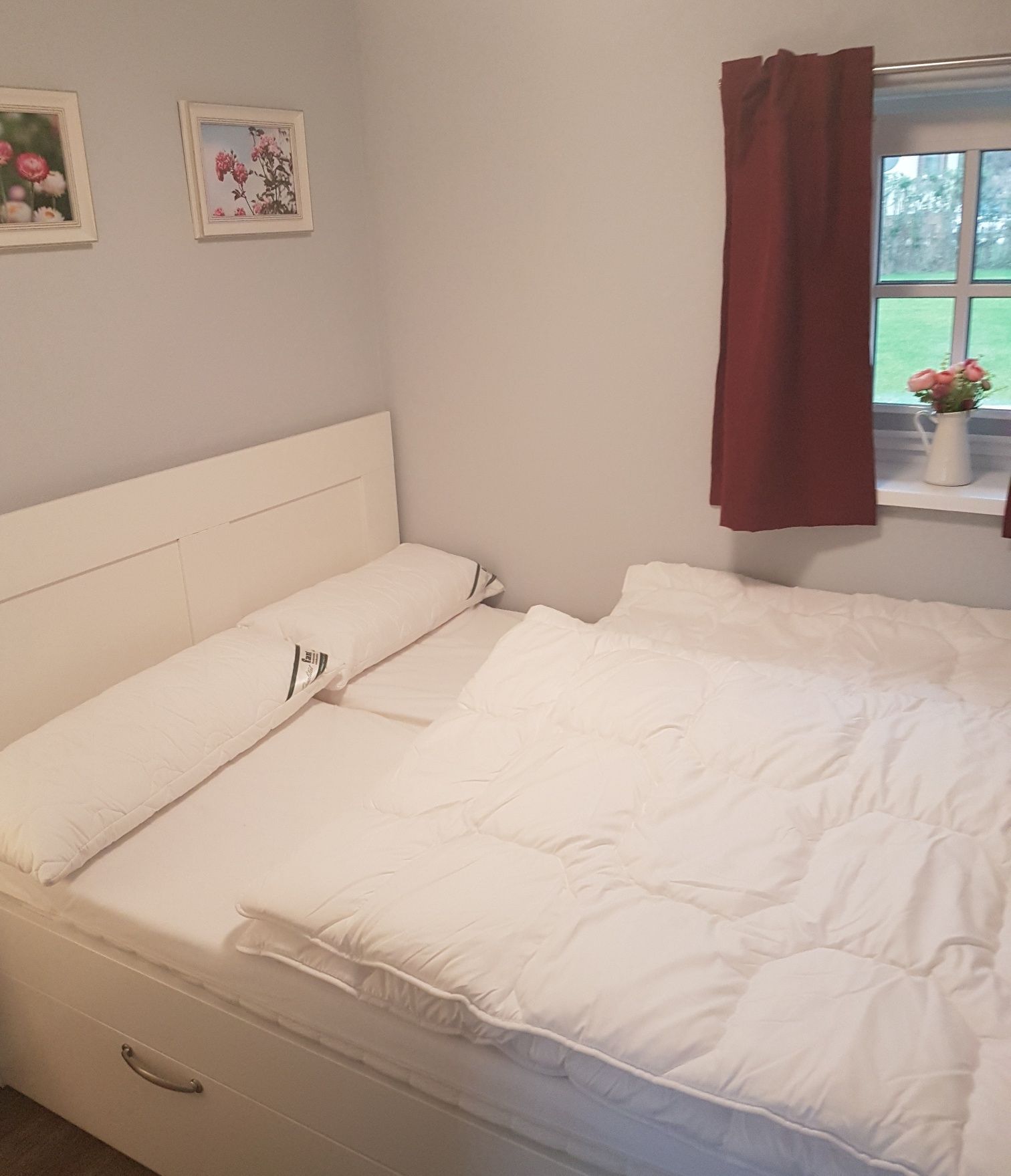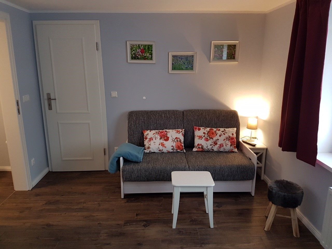 Ca. 40 m² Erdgeschosswohnung (Fertigstellung nach Komplettsanierung in 2018) mit hochwertiger Einrichtung und sep. Küche, 1 Schlafzimmer mit Doppelbett, Wohnzimmer mit ausziehbarem Doppel-Schlafsofa und Blick auf den Teich, grosses Bad mit Dusche, Fussbodenheizung, grosser Flachbildfernseher, eigene Terrasse mit Grillmöglichkeit am sep. Eingang. Zusätzliche Schlafplätze über Whg. 7 Gartenhaus zubuchbar.