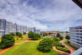 Die Wohnung liegt im Haus N Ferienpark, in der 5. Etage, mit Balkon zum Innenhof, der einen schönen Blick auf die Grünanlage bietet.