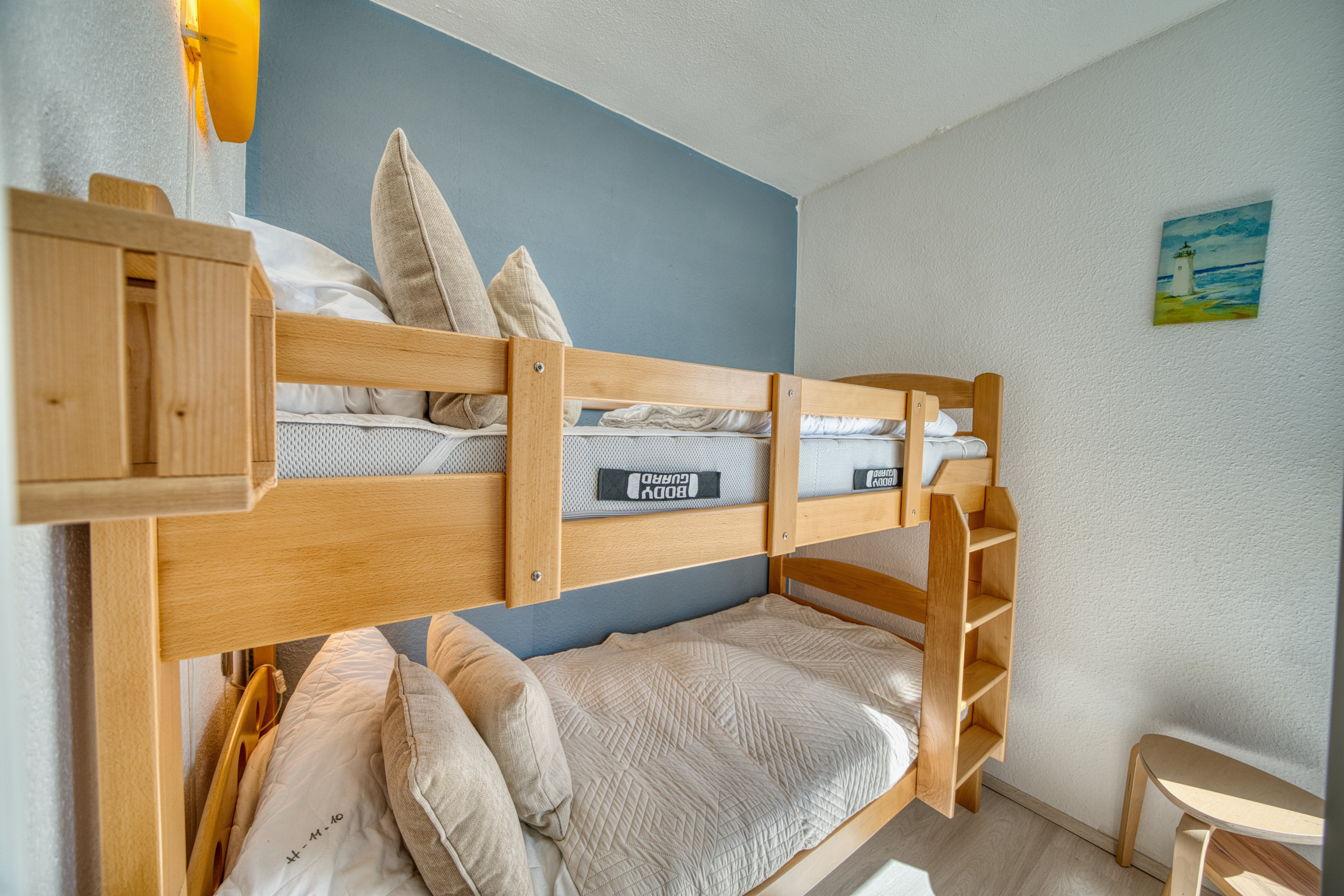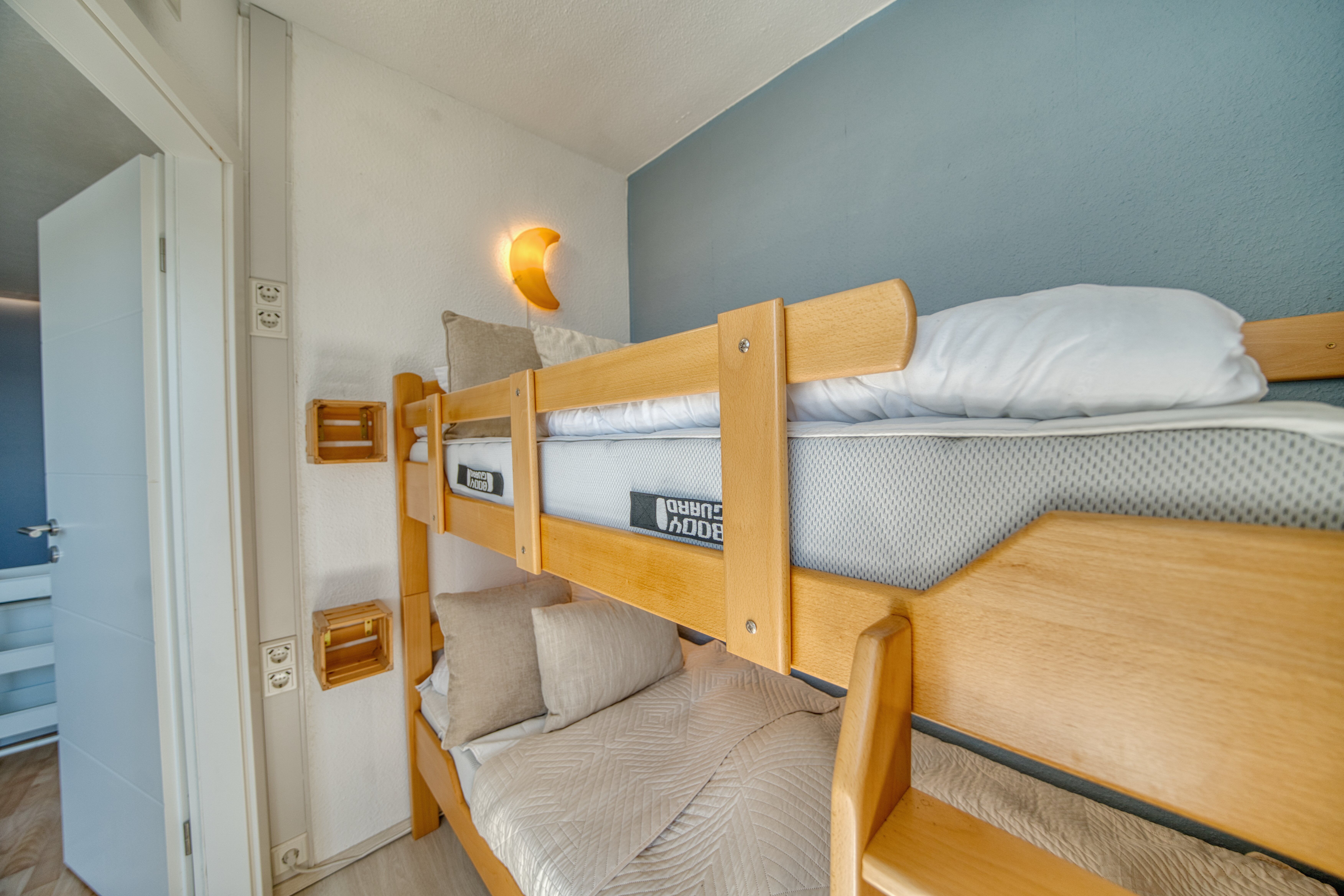 Ob mit oder ohne Kinder: Die ca. 45 m² bieten Ihnen für Ihre schönste Zeit im Jahr eine neue moderne Einrichtung, helle Laminatfußböden, trendiges Sofa ausziehbar bis zu einer doppelten Schlaffläche mit hochwertigen Möbeln in allen Räumen. Das Elternschlafzimmer ist ausgestattet mit einem Doppelbett (180 x 200 cm) und das Kinderzimmer mit Etagenbett (90 x 190 cm). Die vollständig neue Ausstattung sorgt für einen erholsamen Schlaf. Moderne Schränke im Flur und Schlafzimmer runden das Gesamtbild ab.