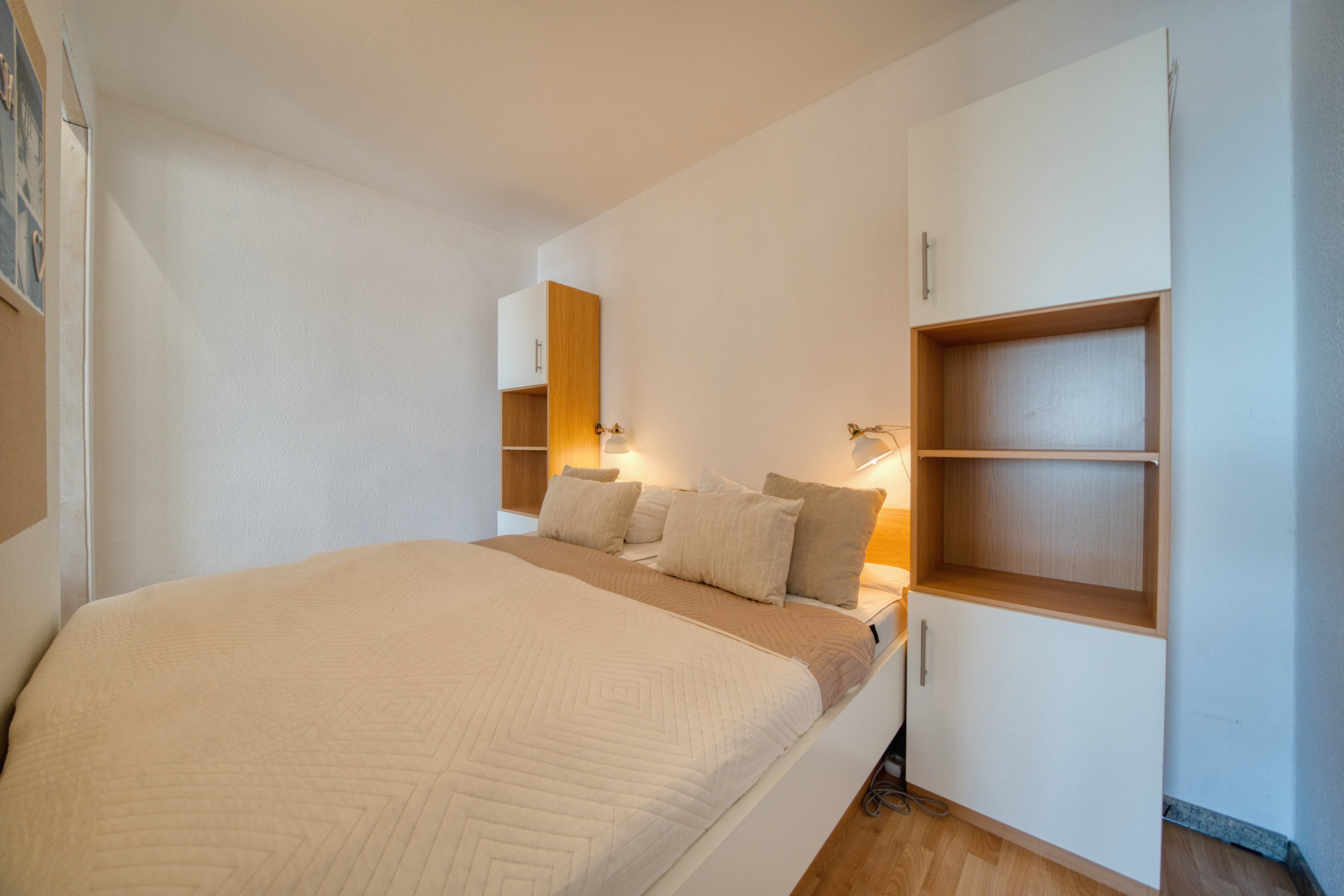 Zur Verfügung steht Ihnen eine Wohnfläche von 45 qm mit folgender Aufteilung: Wohn-Esszimmer, Elternschlafraum, Kinderzimmer, komplett eingerichtete Küche, Bad mit WC und Dusche, Fernseher und Radio im Wohnzimmer.