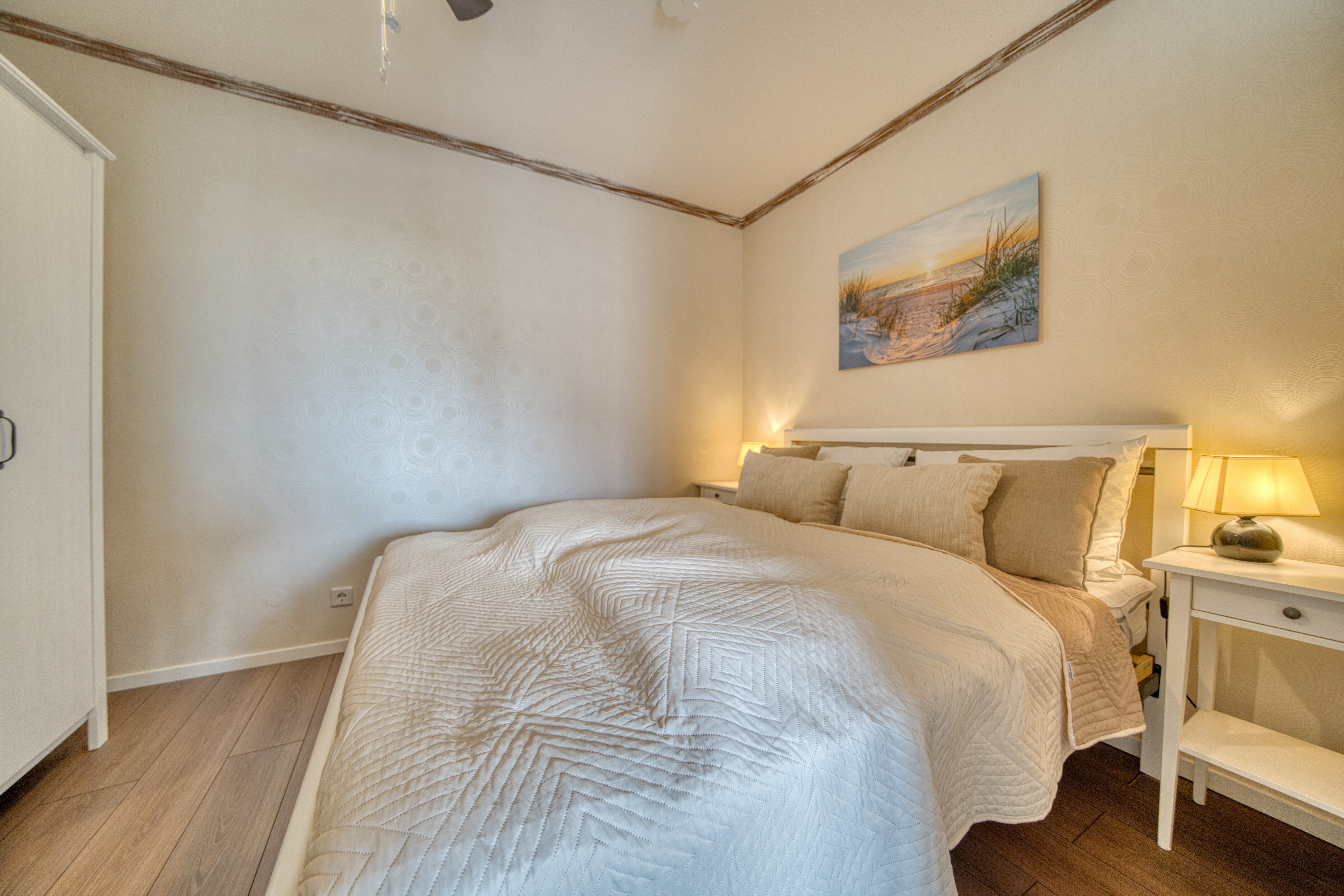 Schlafzimmer mit gemütlichem Doppelbett