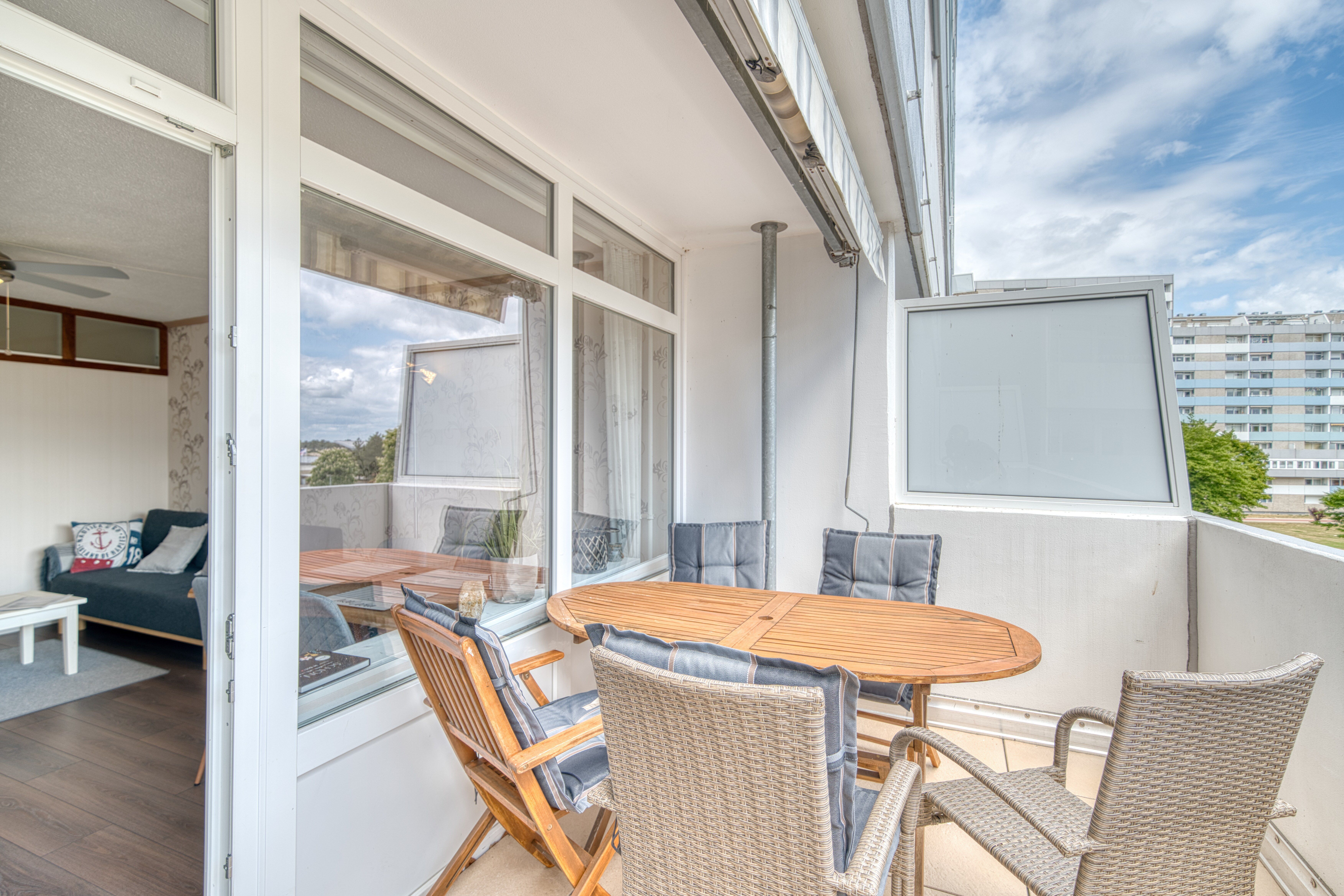 Genießen Sie Ihren Ostseeurlaub in dieser liebevoll eingerichteten Ferienwohnung im Haus H, 3. Etage des beliebten Ferienparks Heiligenhafen. Auf 51 m² Wohnfläche bietet diese Unterkunft Platz für bis zu 4 Personen und überzeugt mit einem großen Balkon mit Blick über den ruhigen Innenhof – perfekt für entspannte Stunden an der frischen Meeresluft.