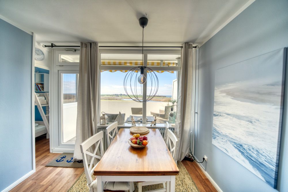 Verbringen Sie einen unvergesslichen Urlaub in dieser charmanten Ferienwohnung im 6. Obergeschoss des Hauses G im Ferienpark Heiligenhafen. Mit einer Wohnfläche von 53 m² bietet diese Wohnung Platz für bis zu 4 Personen und verfügt über einen großen Balkon zur Westseite, von dem Sie einen herrlichen Ausblick auf die Ostsee genießen können. Besonders ideal für Familien, die sich nach Erholung und einem atemberaubenden Panorama sehnen.