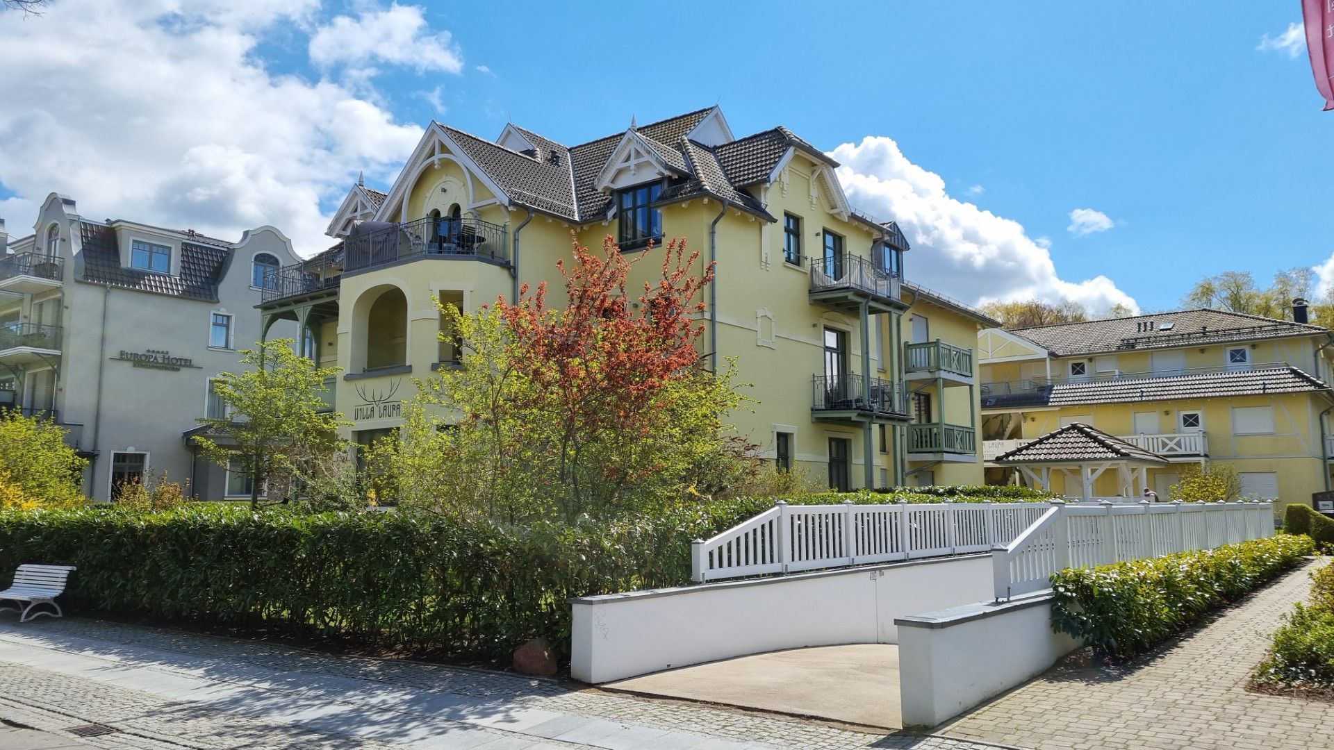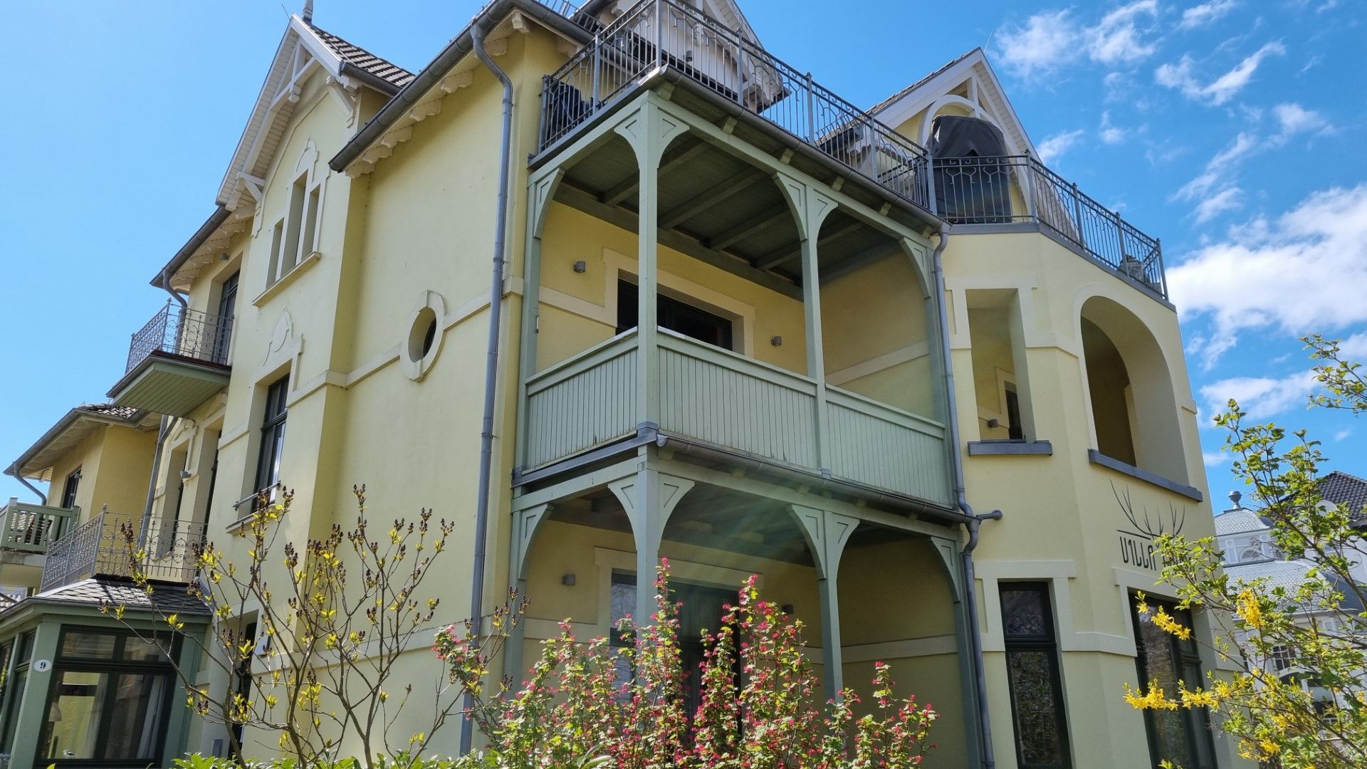 Die gemütliche 2-Zimmer-Wohnung befindet sich im Hochparterre der denkmalgeschützten Villa Laura und ist über 4 Stufen zu erreichen.