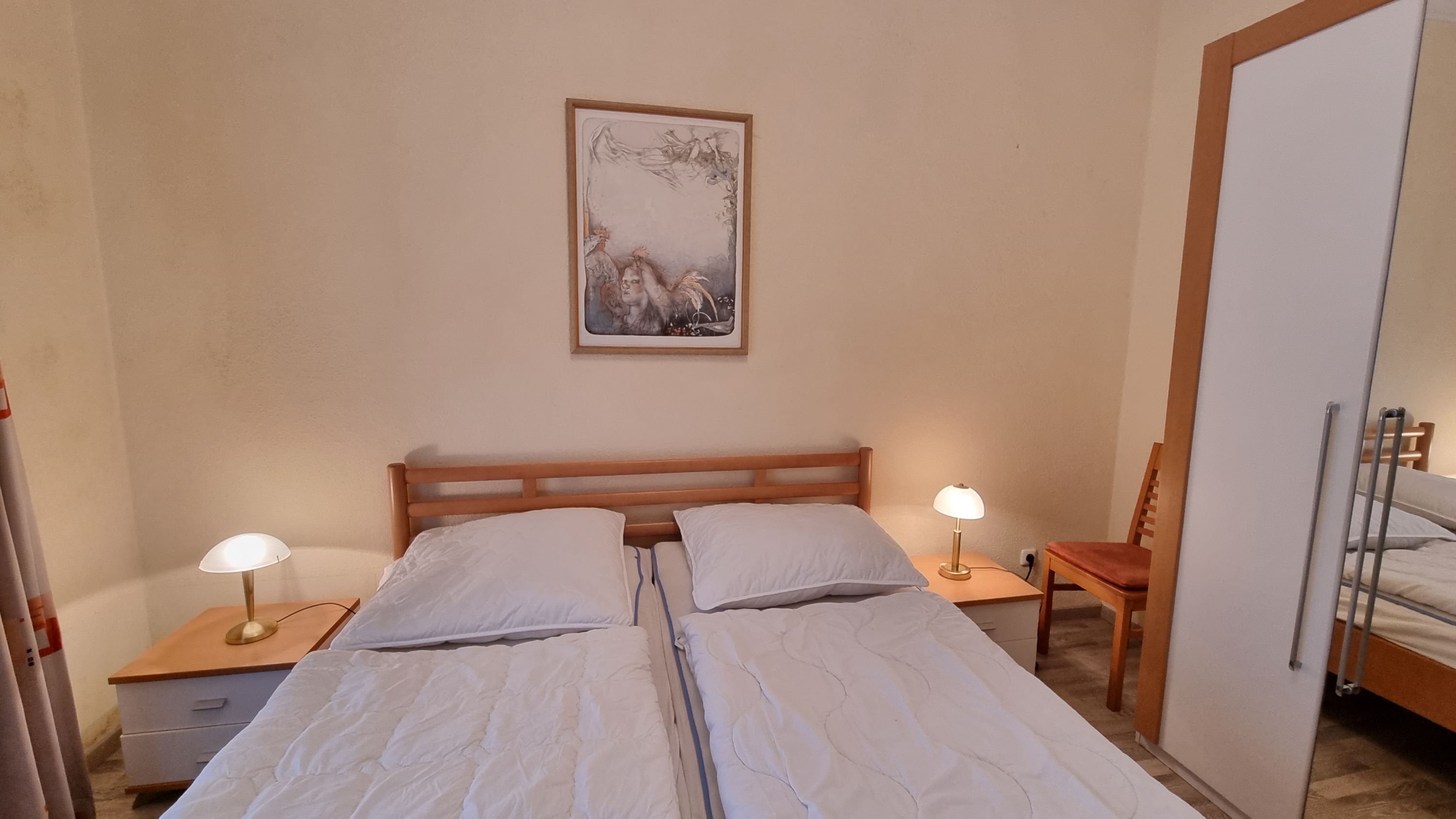 Im Schlafzimmer befindet sich ein weiterer Fernseher.
