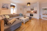 Die komfortable Couchgarnitur lädt zum Verweilen ein. Hier ist eine Aufbettung für bis zu zwei weitere Personen möglich. Der große Flachbild-TV und ein kostenfreier WLAN-Zugang runden das Erlebnis gekonnt ab.