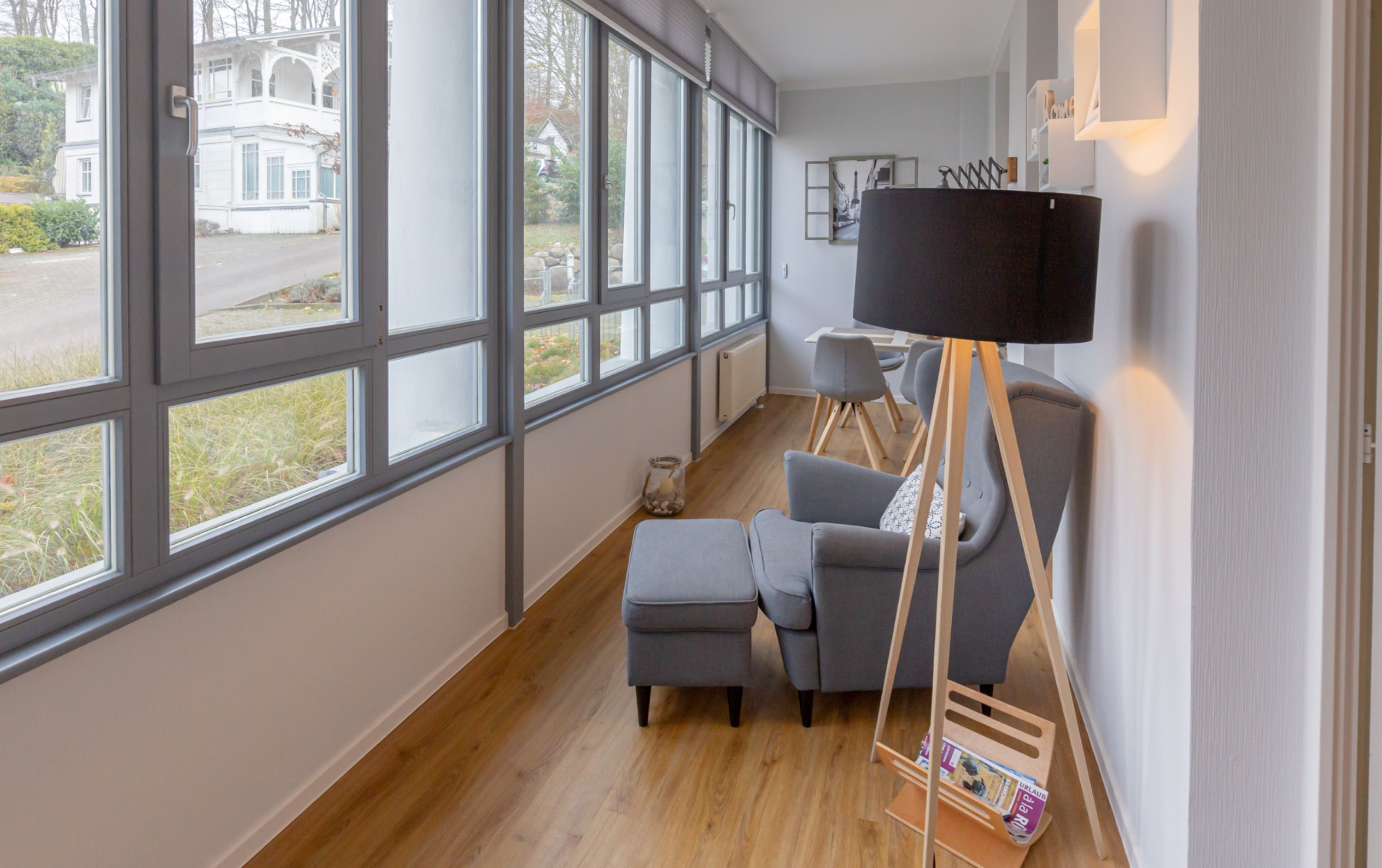 Lassen Sie Ihre Seele auf dem gemütlichen Sessel baumeln und genießen Sie den Blick auf die allseits bekannte Wilhelmstraße. Auch ein kleiner Essbereich für 4 Personen schließt sich hier an.