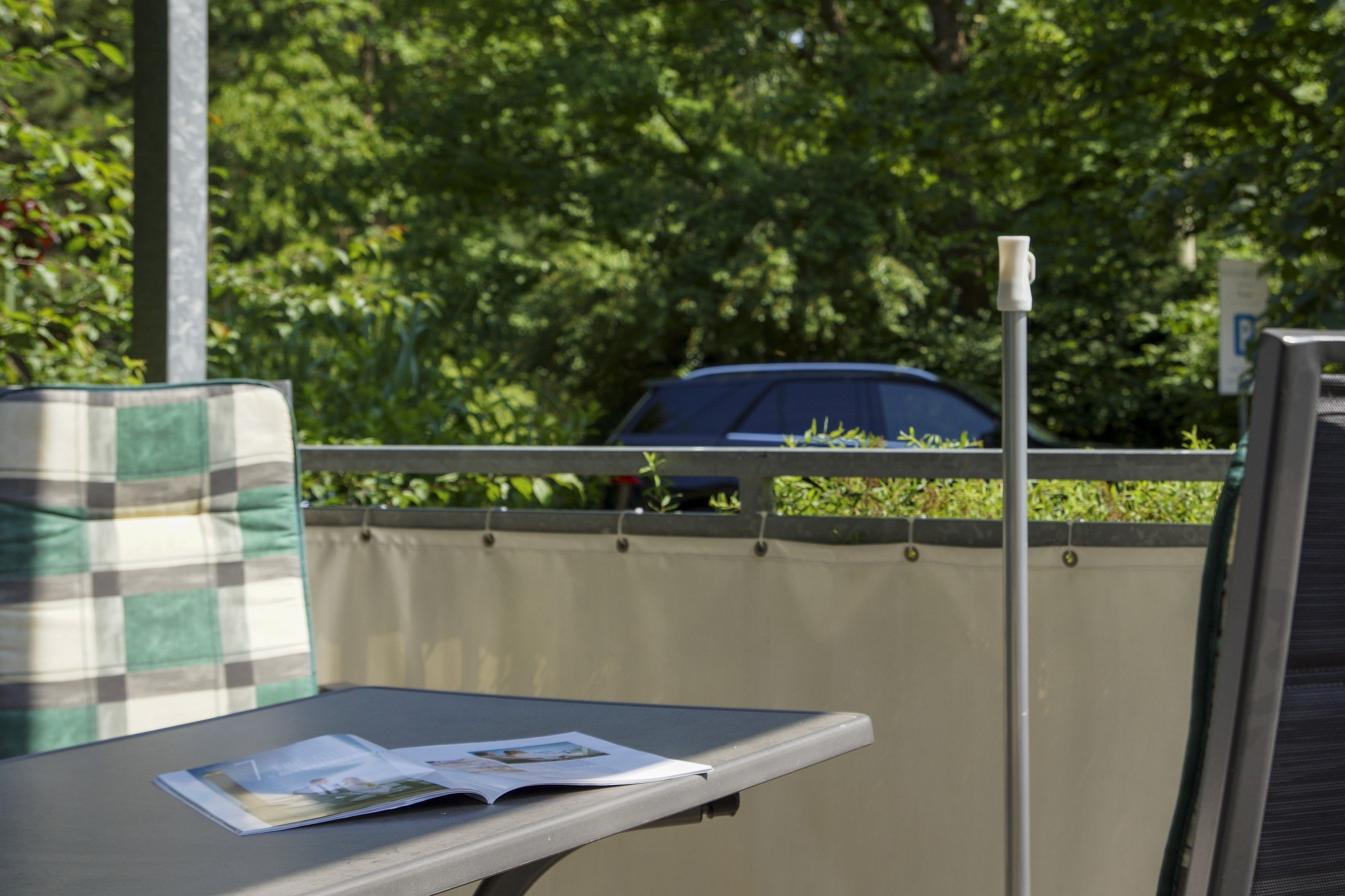 Das modern eingerichtete Wohnzimmer mit TV und Schlafcouch bietet Ihnen nicht nur Zugang zum sonnigen Balkon, sondern auch einen hellen Essbereich.