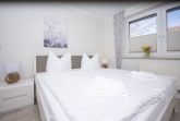 Der freundliche Wohnbereich bietet einen gemütlichen Ort zum Ausklingen der erlebnisreichen Tage auf Rügen. Hier befindet sich neben einem modernen Flachbild-TV auch eine außerordentlich komfortable Couchgarnitur, die eine optionale Aufbettung für bis zu 2 weitere Personen darstellt. Von diesem Zimmer erhalten Sie einen direkten Zugang auf die eigene Terrasse, welche mit komfortablen Gartenmöbeln ausgestattet ist. Hier können Sie nach einem erlebnisreichen Strandtag in Baabe einfach mal die Seele baumeln lassen.