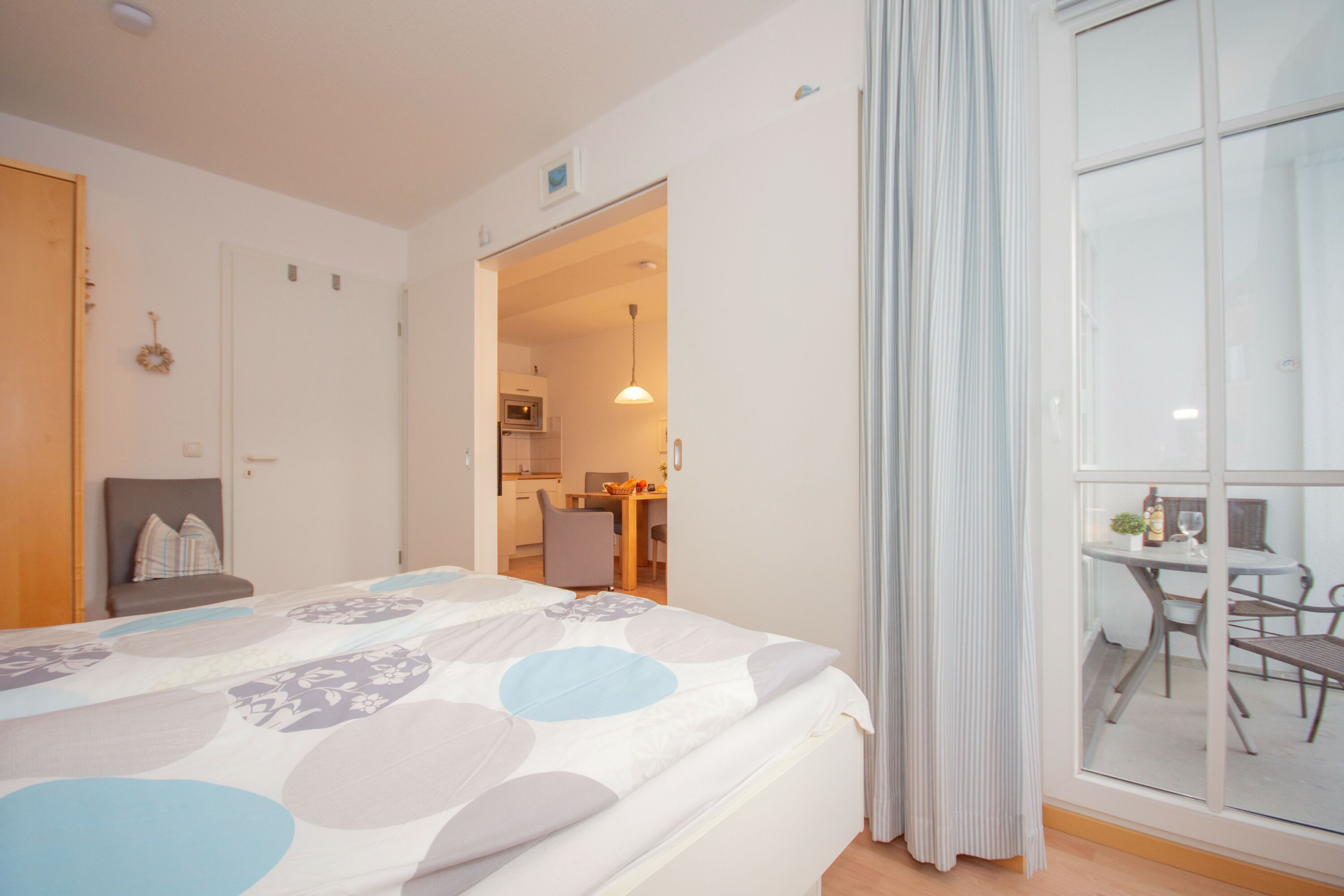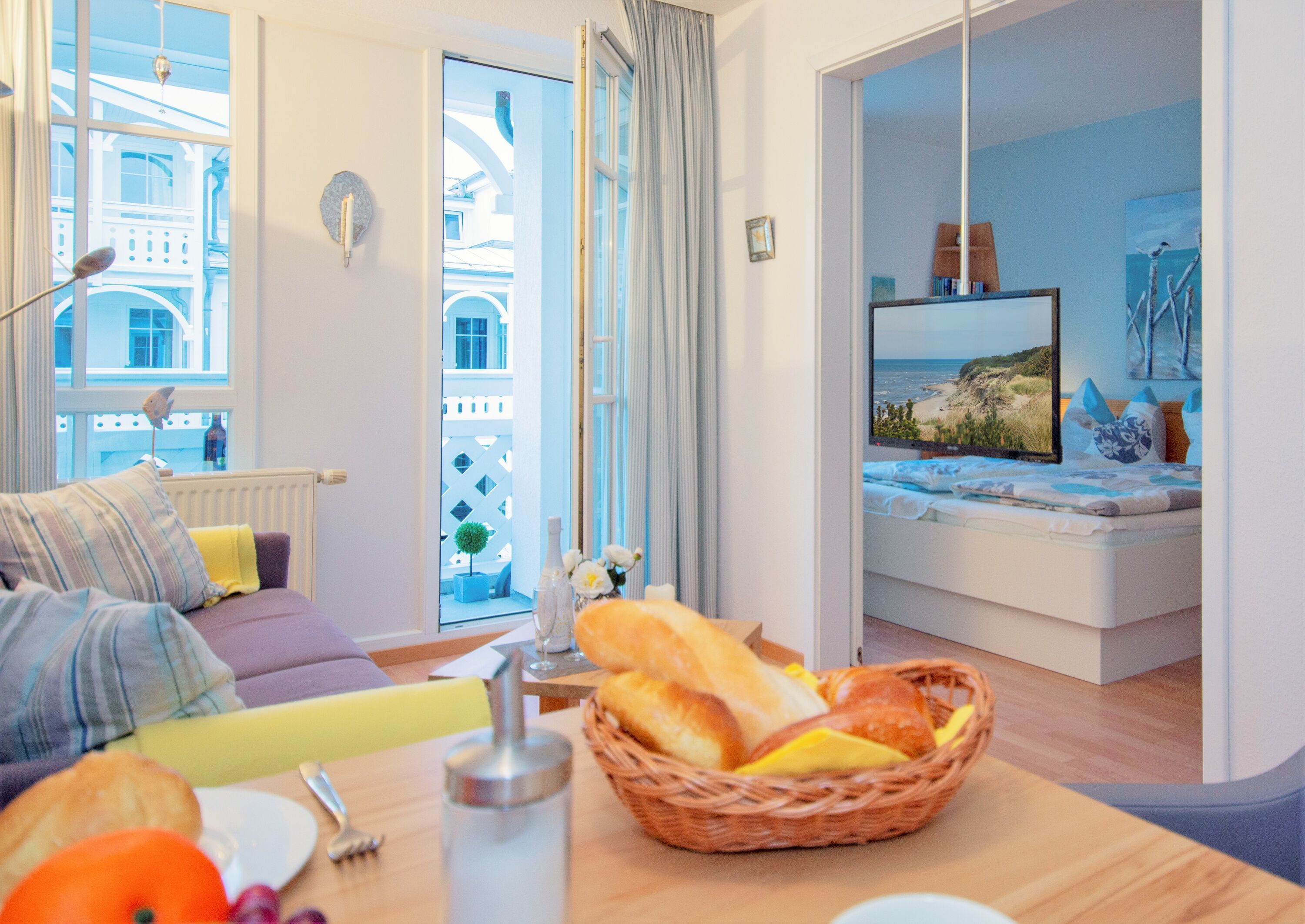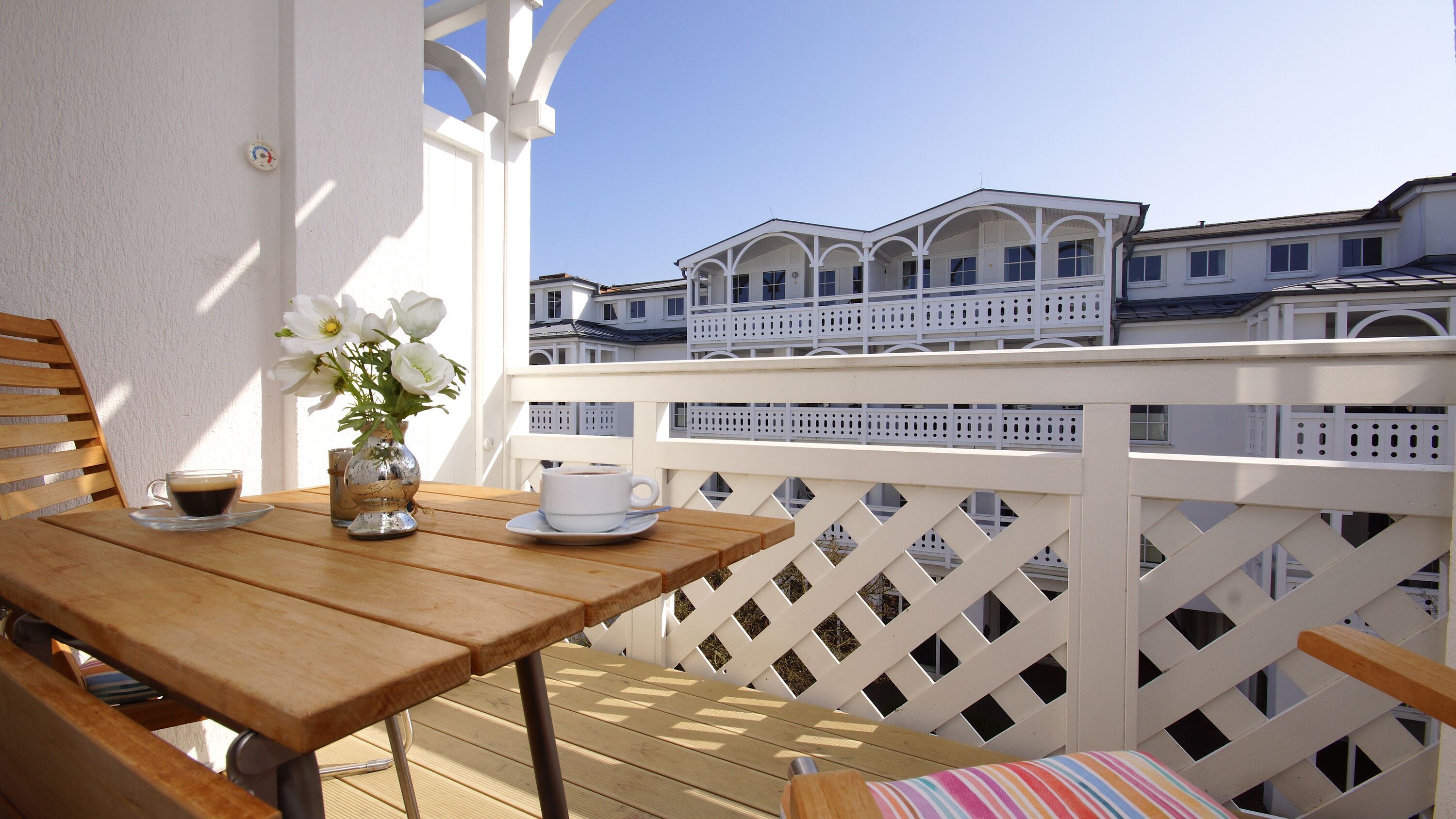 Genießen Sie von dort aus die frische Ostseeluft und einen Blick auf den ruhigen Innenhof und die stilvolle Bäderarchitektur. Komfortable Gartenmöbel werden Ihnen selbstverständlich zur Verfügung gestellt.