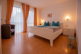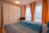 Im separaten Schlafbereich gibt es ein komfortables Doppelbett, welches dank den Verdunkelungsmöglichkeiten zum himmlischen Entspannen einlädt. Auch ein großer Kleiderschrank bietet Ihnen viel Platz für Ihr Gepäck.