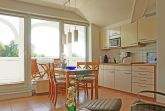In der modernen Küche befinden sich hochwertige Küchengeräte, wie beispielsweise ein Kühlschrank, ein Geschirrspüler, ein Herd und eine Mikrowelle. Auch allerlei Küchenkleingeräte (Toaster, Kaffeemaschine ...) stehen Ihnen zur Unterstützung im Urlaub bereit.