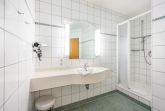 Im Schlafbereich steht ein komfortables Doppelbett und ein geräumiger Kleiderschrank und ein kleiner Schreibtisch bereit. Im hell erleuchteten Badezimmer befindet sich eine Dusche und ein WC.