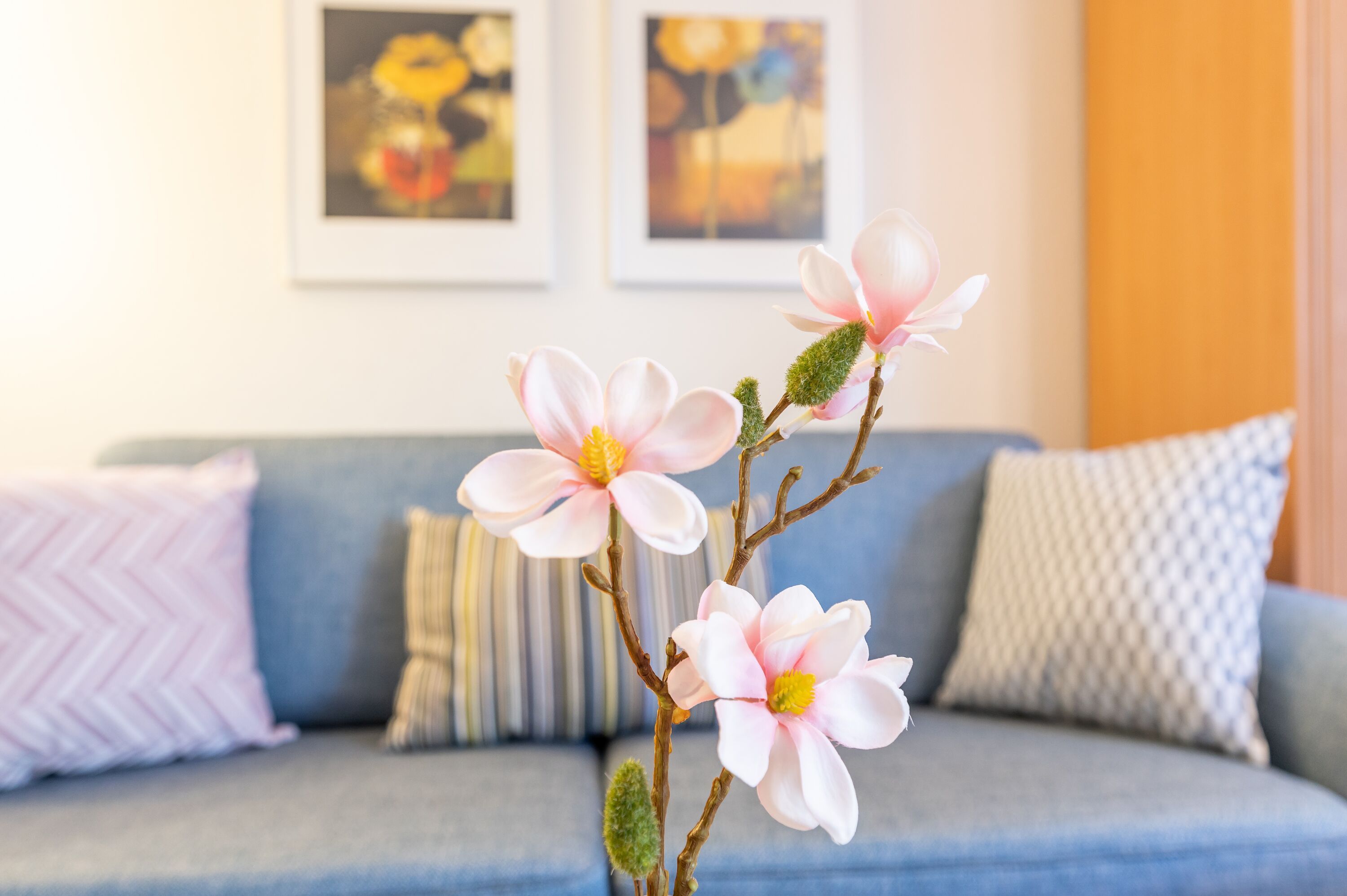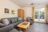 Das helle Wohnzimmer verfügt über eine Couchgarnitur, welche ebenso eine Aufbettung für 2 weitere Personen darstellt. Neben einem TV und einem kostenfreien WLAN-Zugang erreichen Sie von hier aus die sonnige Terrasse inkl. Terrassenmöbel.