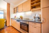 Die Küchenzeile ist mit einem Kühlschrank, einem Ceranfeld mit Backofen, einer Spülmaschine und einer Mikrowelle ausgestattet. Ebenso finden sich hier alle nötigen Küchenkleingeräte (Wasserkocher, Kaffeemaschine, Toaster..).