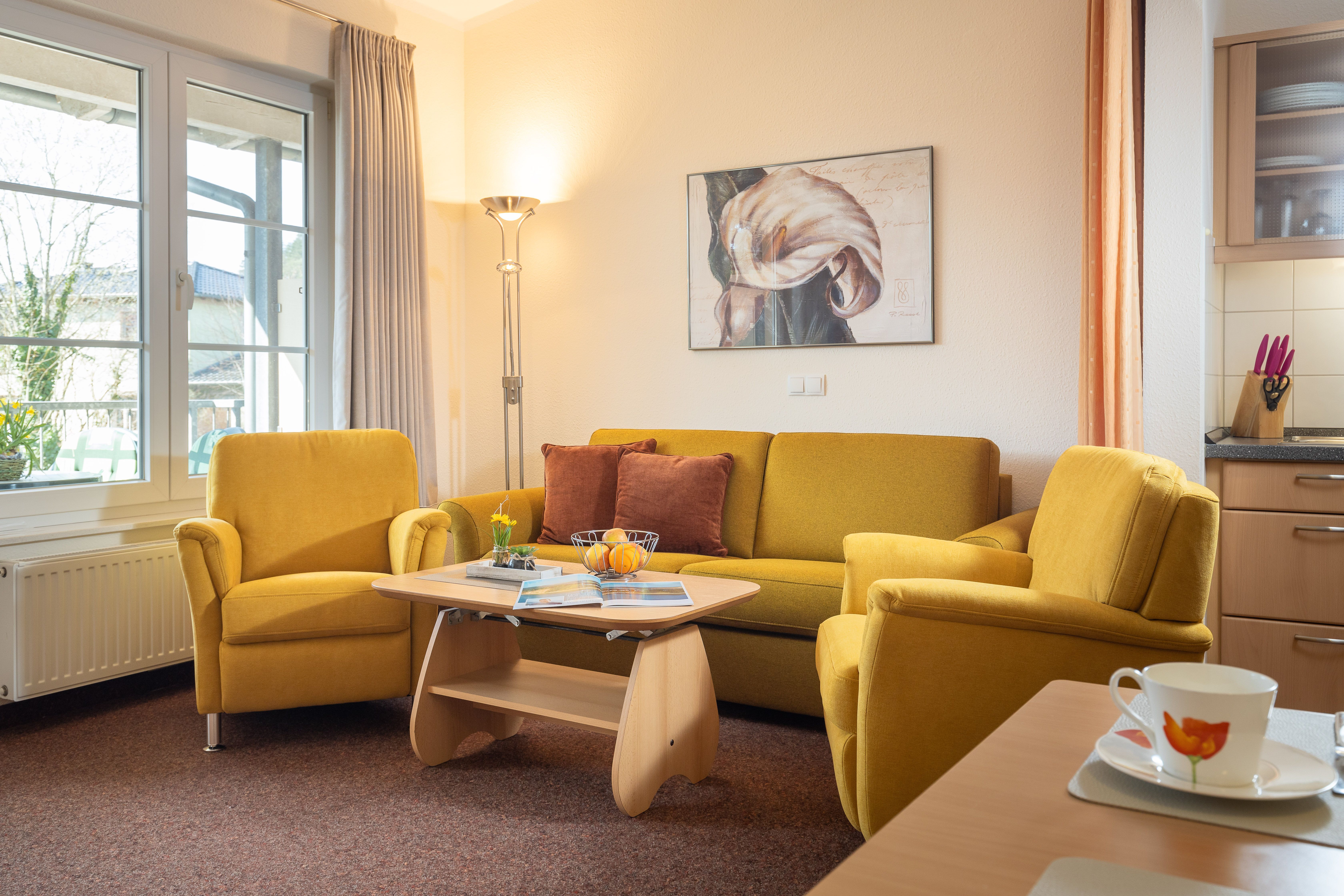 Die freundlich eingerichtete Wohnung 15 in der Ferienanlage Margaretha ist ca. 58 m² groß und für bis zu 4 Personen ausgelegt.