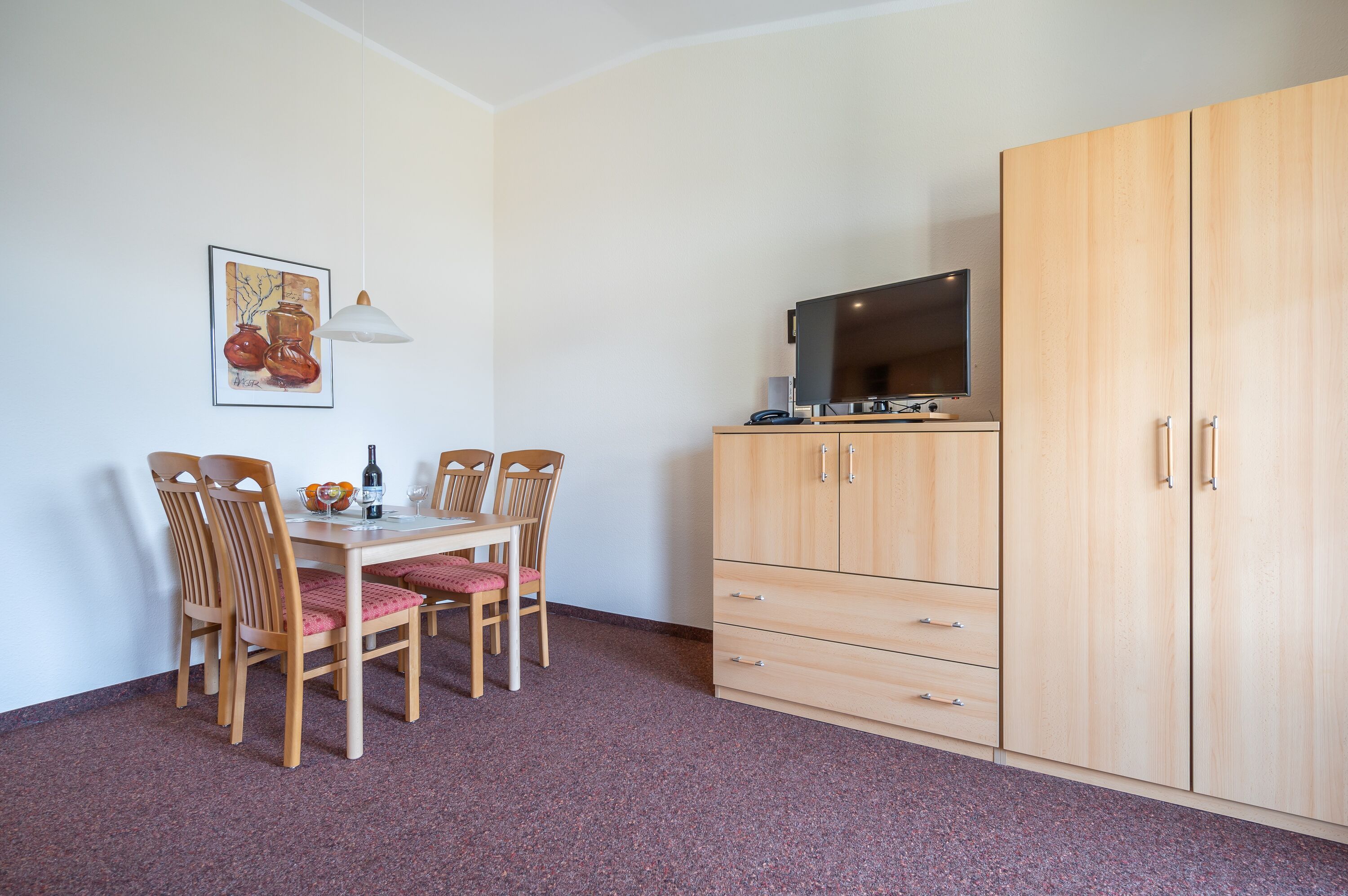 Die freundlich eingerichtete Wohnung 17 in der Ferienanlage Margaretha ist ca. 58 m² groß und für bis zu 4 Personen ausgelegt.