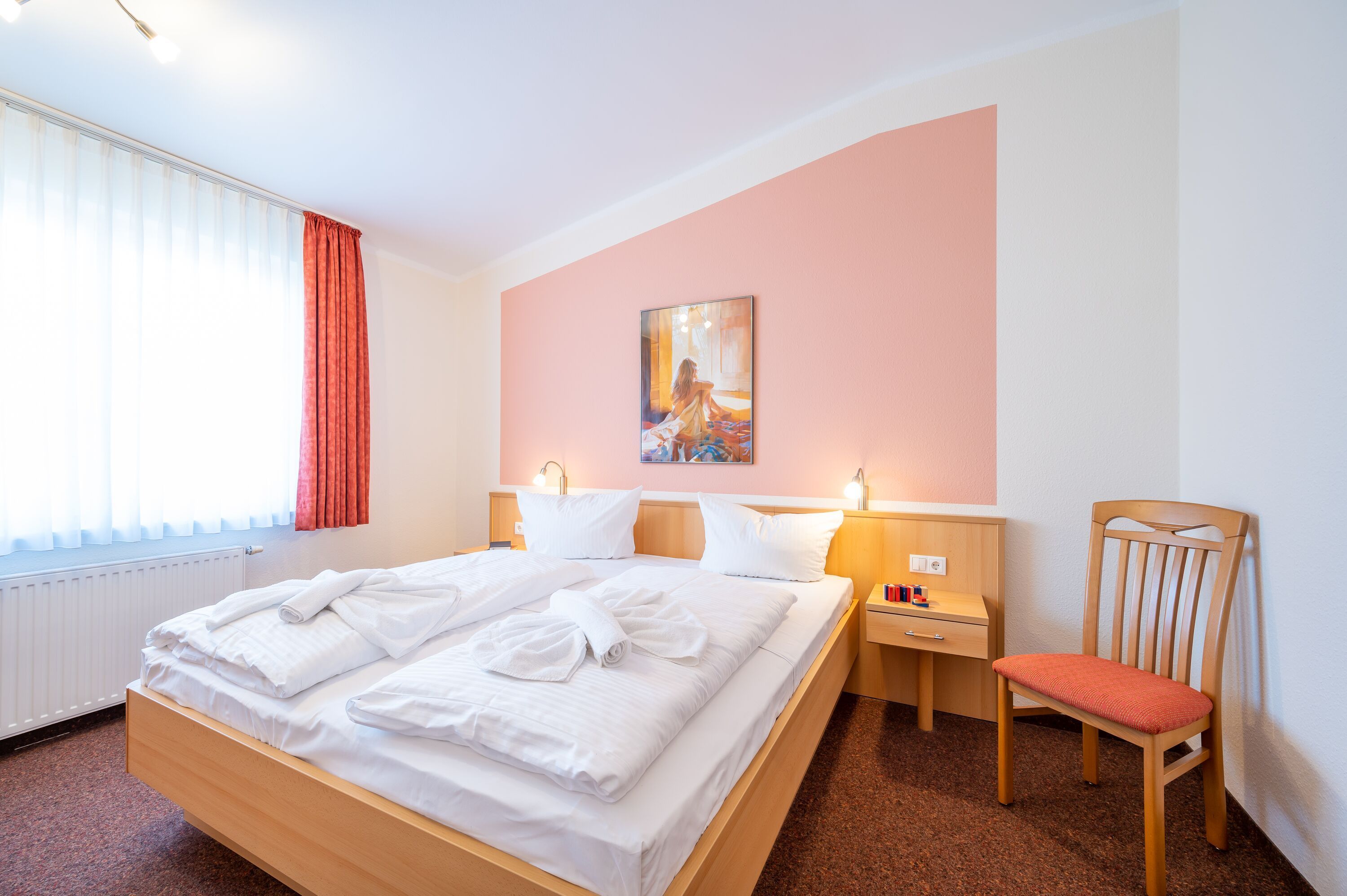 Die behindertenfreundliche Nichtraucherwohnung befindet sich im Hinterhaus der Ferienanlage Margaretha. Zur Anlage gehört pro Wohnung ein Parkplatz auf dem Hof, sowie ein gemeinschaftlicher Fahrradraum.
