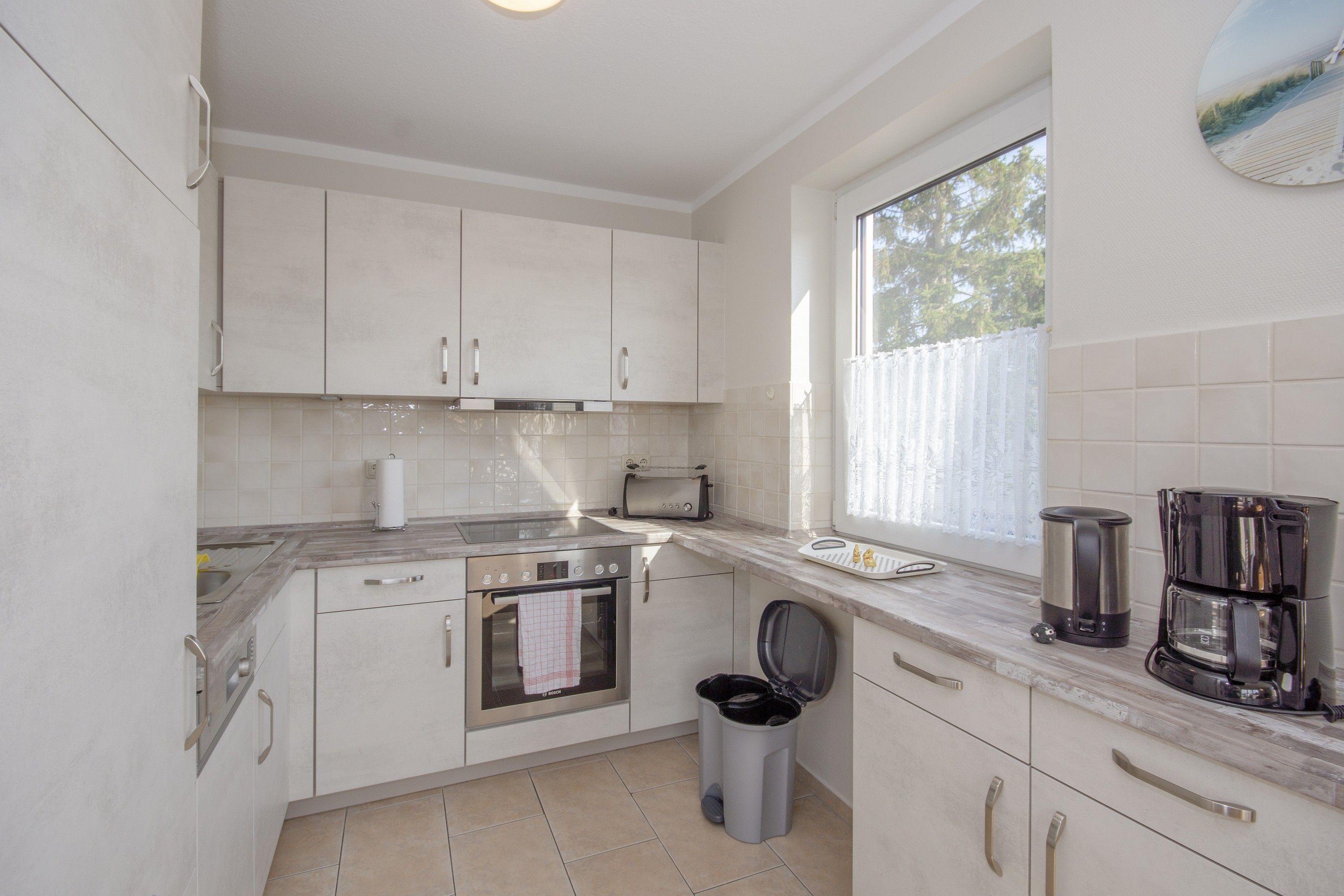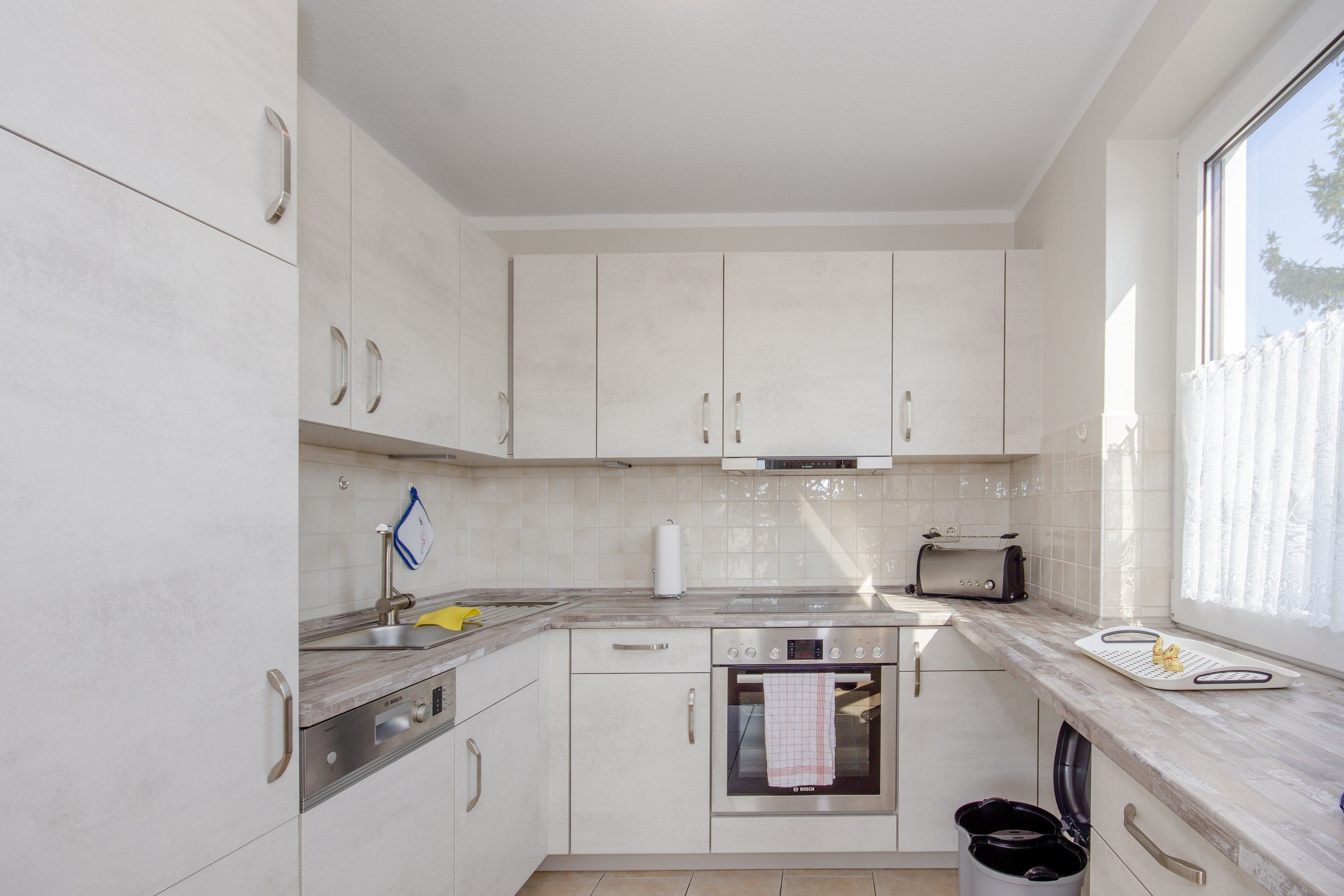 In der Wohnung befindet sich eine offene, voll ausgestattete Küche mit Spülmaschine, Herd, Cerankochfeld und Mikrowelle. Zahlreiche Küchenutensilien eröffnen Ihnen die Möglichkeit, einen kulinarischen Kochabend zu verleben.