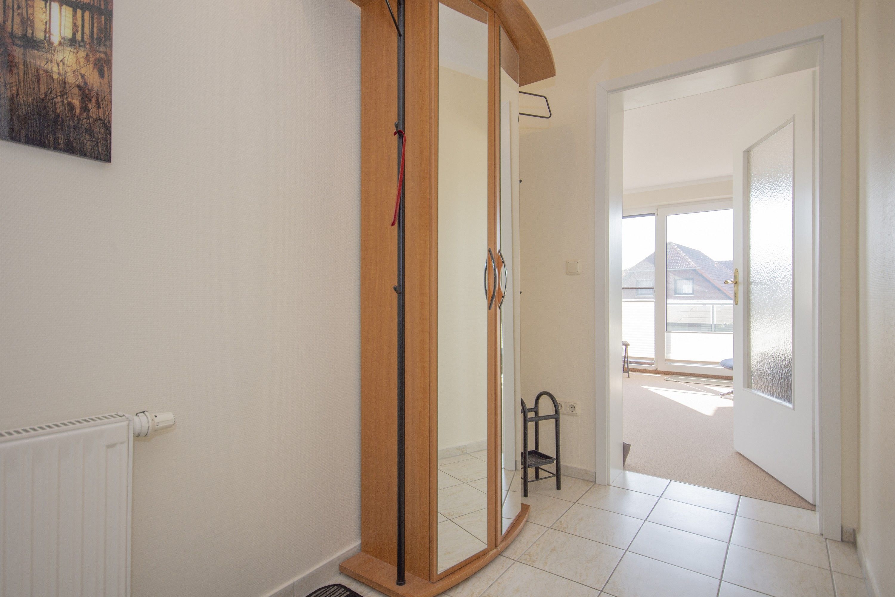 Die Ferienwohnung 5 im 1. Obergeschoss im Haus Rügensonne verfügt über einen freundlichen Eingangsbereich, einen Balkon, einen gemütlichen Wohnbereich und ein separates Schlafzimmer.