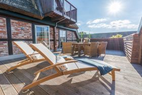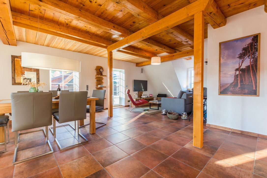 Nach einem erlebnisreichen Urlaubstag können Sie auf unserer wunderschönen Terrasse mit Ostseeblick entspannen oder Sie machen es sich gemeinsam in unserem Wohnbereich gemütlich.