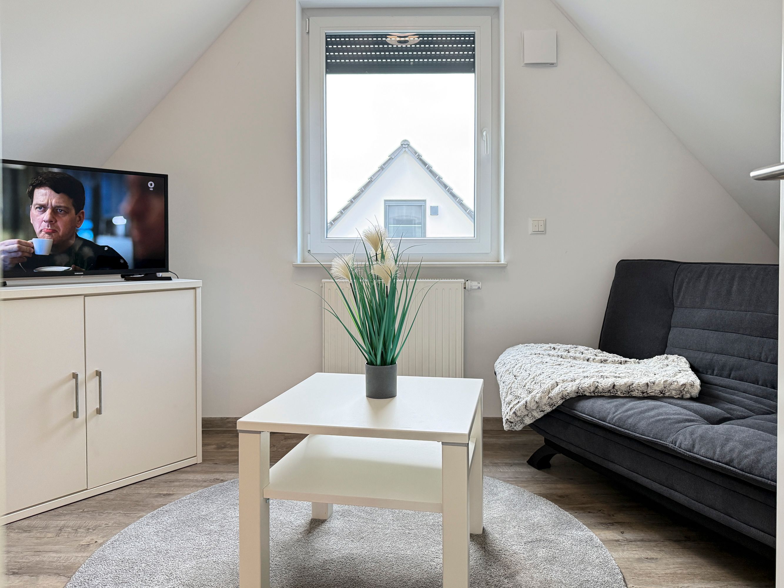 • Gemütlicher Wohnbereich mit wandelbarer Couch und HD-TV