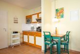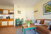 Vom Wohnbereich betreten Sie die möblierte Loggia, die nach Nord-Osten ausgerichtet ist. Hier können Sie Ihr Frühstück in der Morgensonne genießen und den Abend nach einem schönen Tag am Meer ausklingen lassen.