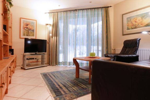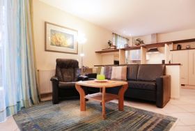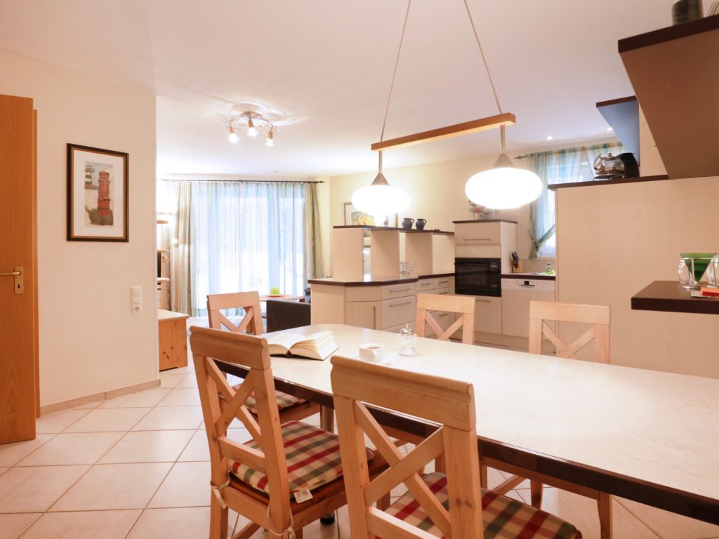 Die in den Wohnraum integrierte Küche ist voll ausgestattet und teilweise für einen Rollstuhl unterfahr-/höhenverstellbar. Vorhanden sind: Ceranfeldherd, Backofen, Mikrowelle, Dunstabzug, Kühlschrank mit integr. Gefrierfach, Kaffeemaschine, Wasserkocher, Toaster, Geschirrspüler u.v.m. Ihre Urlaubsmahlzeiten können Sie am Esstisch zu sich nehmen, oder während der wärmeren Jahreszeit auf der saisonal möblierten Terrasse.