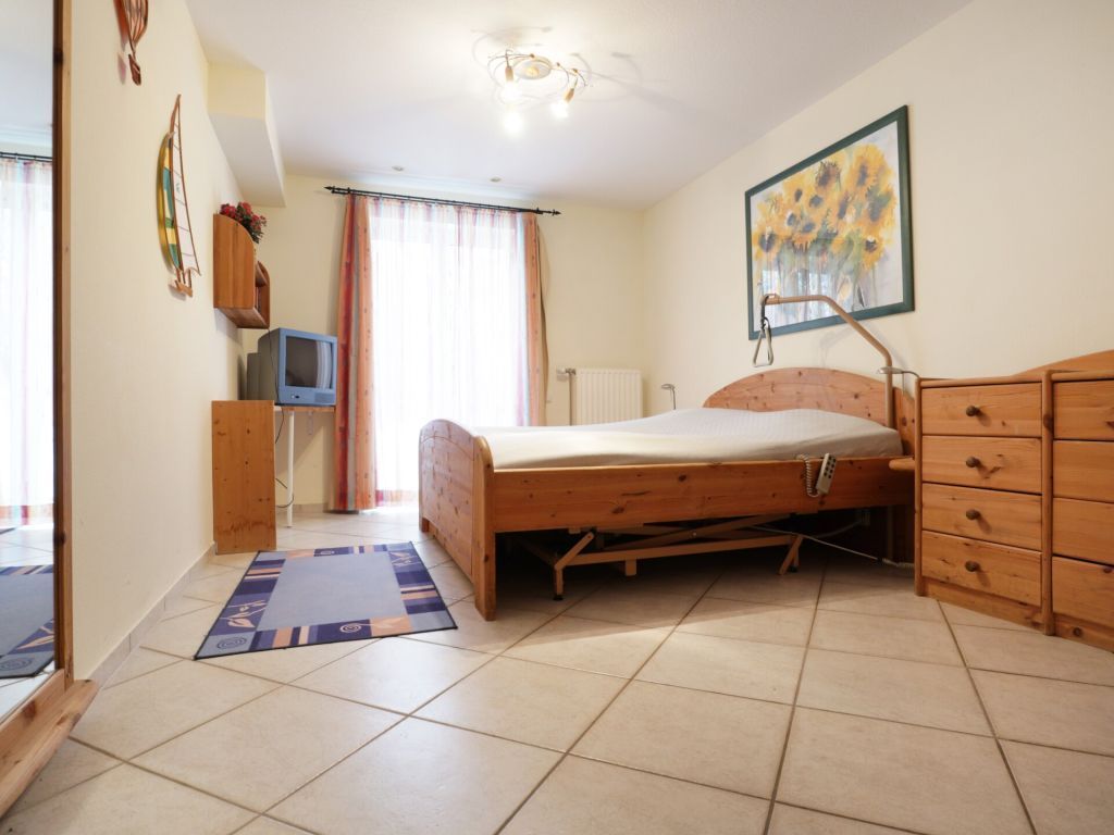Die Wohnung verfügt über zwei separate Schlafzimmer. Eines der Schlafzimmer verfügt über ein Doppelbett (Pflegebett), Kleiderschrank, Fernseher. Das zweite Schlafzimmer ist mit zwei Einzelbetten, eines davon als Pflegebett nutzbar, Kleiderschrank und Fernseher ausgestattet.
