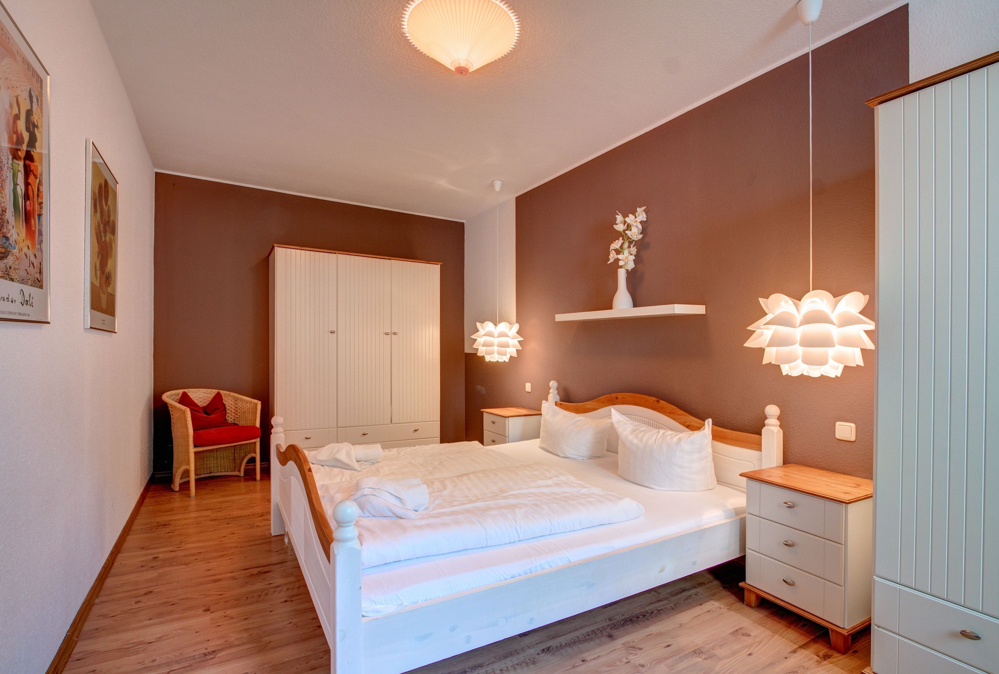 Separates Schlafzimmer mit komfortablem Doppelbett,