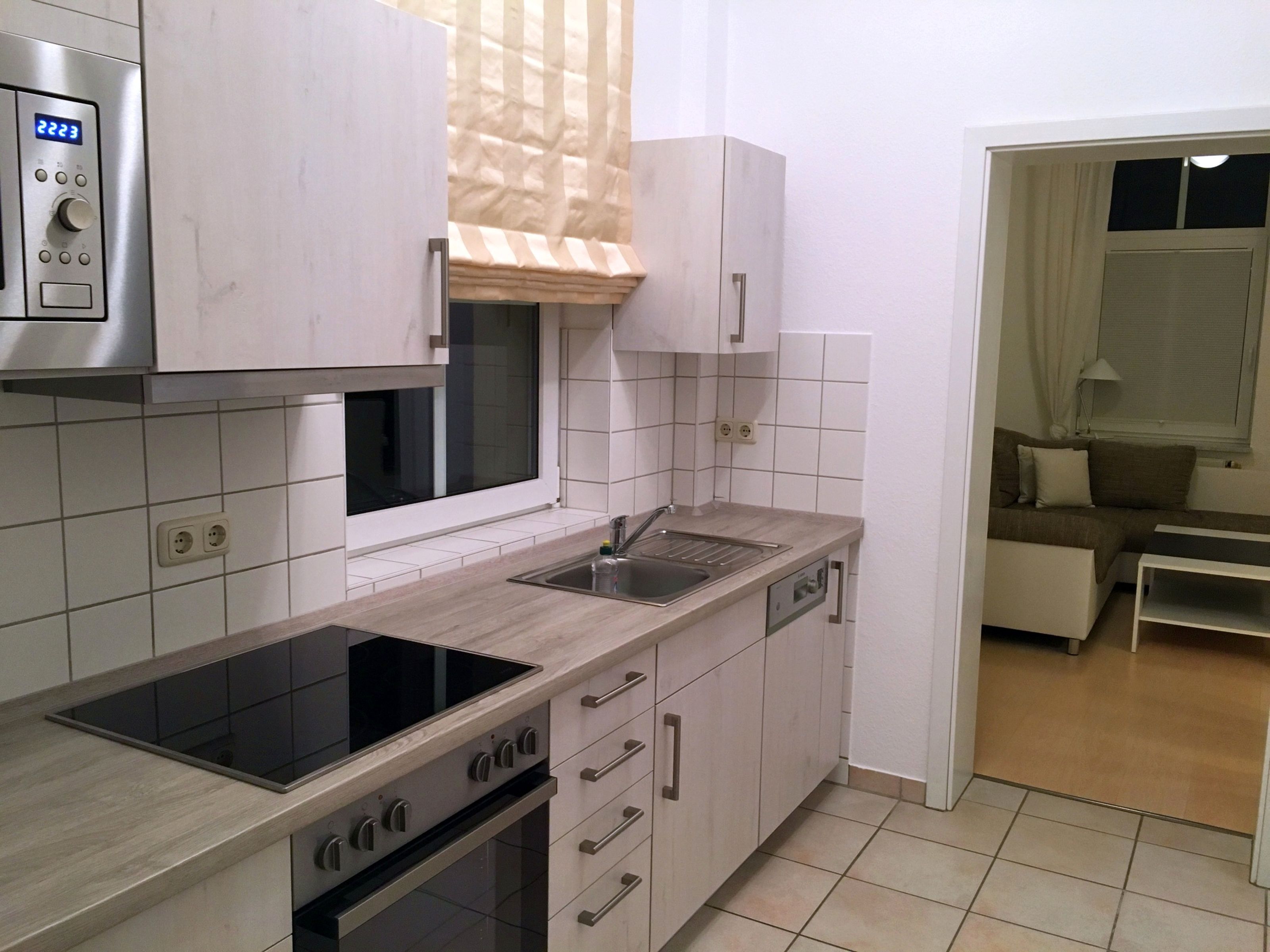 Separate Küche mit Herd, Kühlschrank, Mikrowelle & Kaffeemaschine,