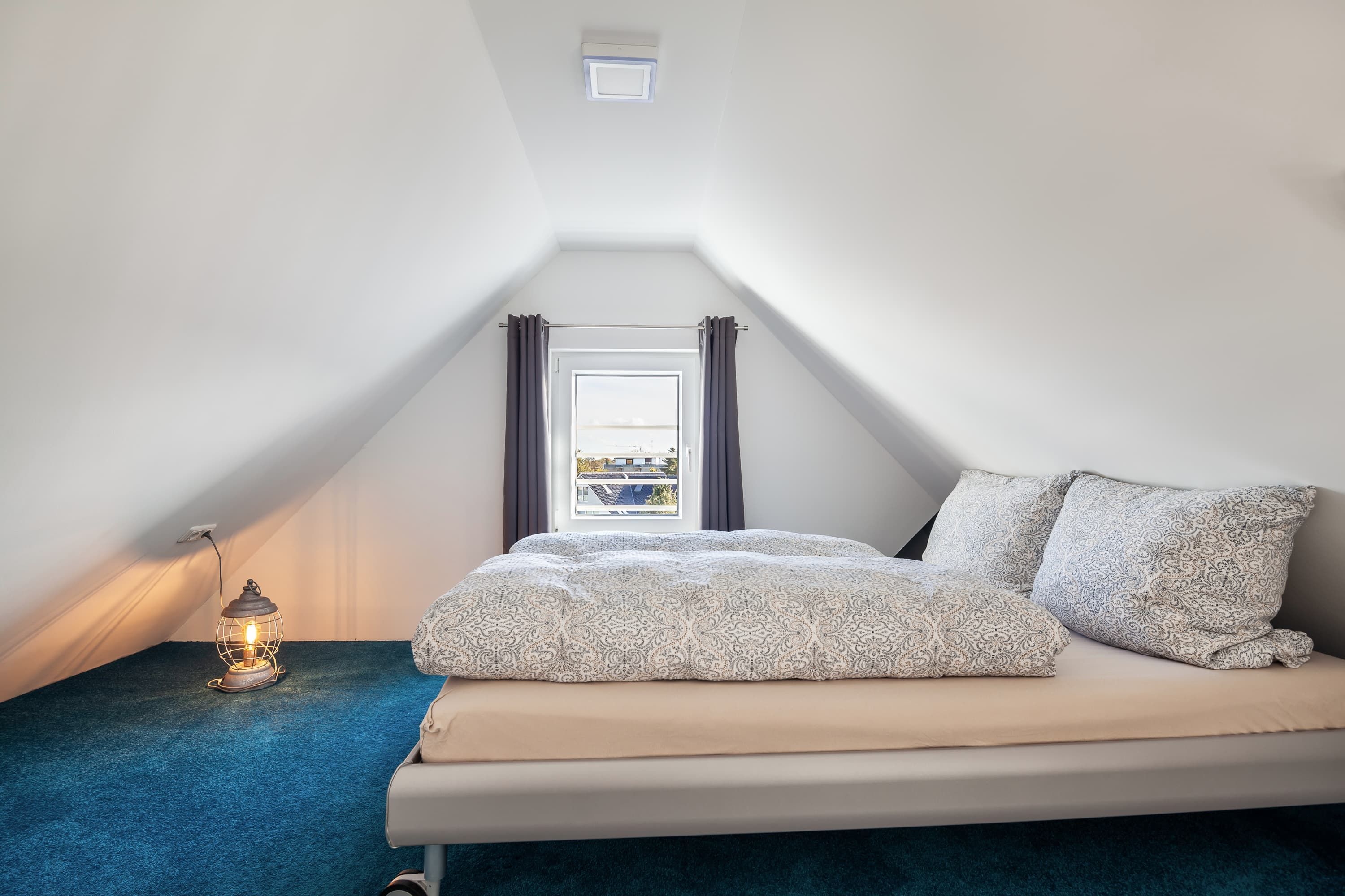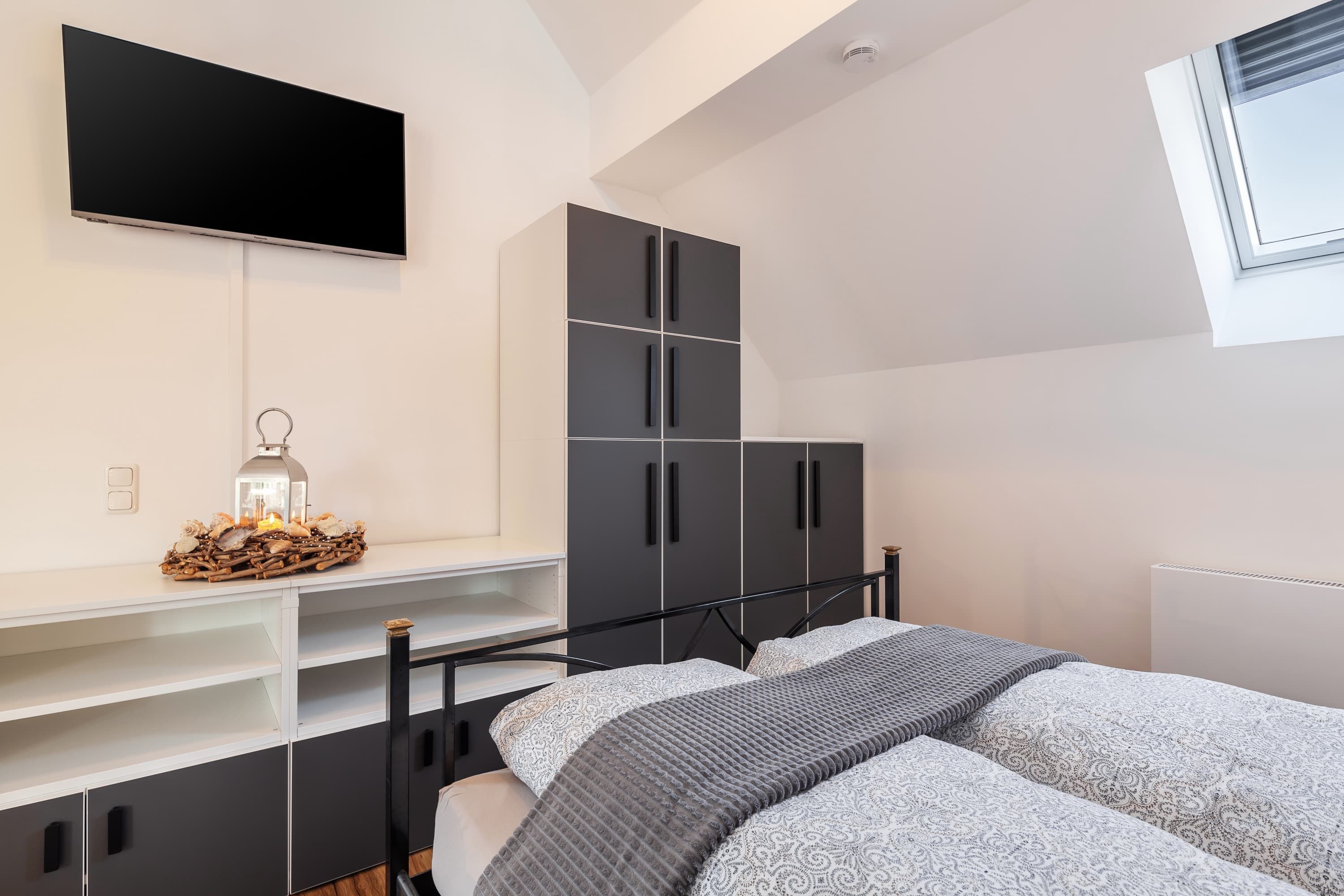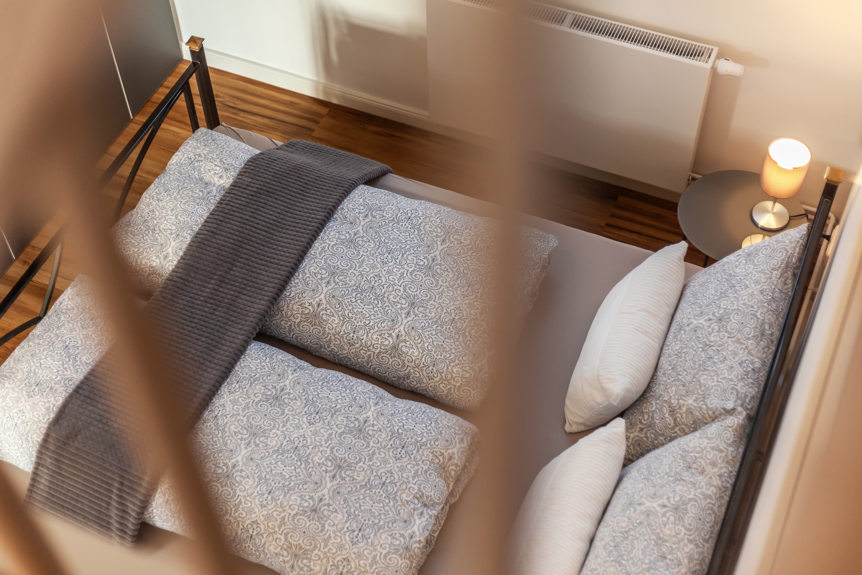 Unsere Wohnung ist darauf ausgerichtet, Ihnen erholsamen Schlaf zu ermöglichen. Das Schlafzimmer ist mit hochwertigen, schalldichten Fenstern ausgestattet und bietet ausreichend Verdunklungsmöglichkeiten. Die natürliche Bauweise unterstützt zudem ein angenehmes Raumklima, ähnlich einer Klimaanlage. Ein zusätzliches Fenster Element zum Wohnbereich verleiht dem Schlafzimmer einen besonderen Charme und lässt sich je nach Wunsch öffnen.