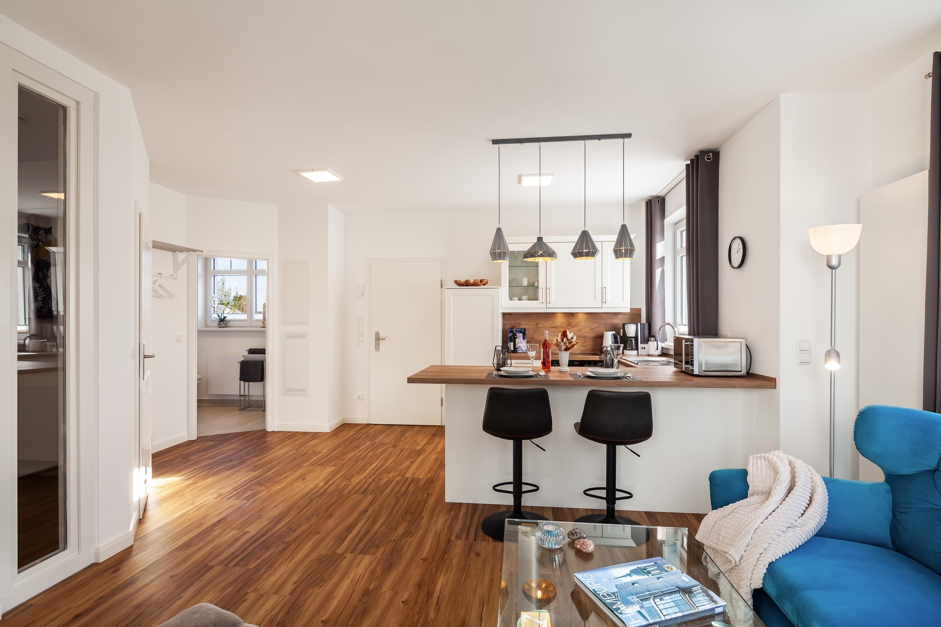 Genießen Sie den Luxus und die Annehmlichkeiten unserer komplett neu gebauten Ferienwohnungen, die mit viel Liebe zum Detail gestaltet wurden. Alle 4-Sterne-Klassifizierten Wohnungen bieten Ihnen gehobenen Komfort und eine erstklassige Ausstattung für einen unvergesslichen Aufenthalt (eigener Parkplatz direkt an der Wohnung, Bettwäsche, Handtücher, Endreinigung und Starterpaket Verbrauchsmaterialien inklusive).