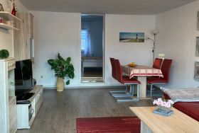 • Wohn-/Eingangsbereich: Wohnschlafraum (Schlafcouch), Esstisch, TV, Radio, WLAN