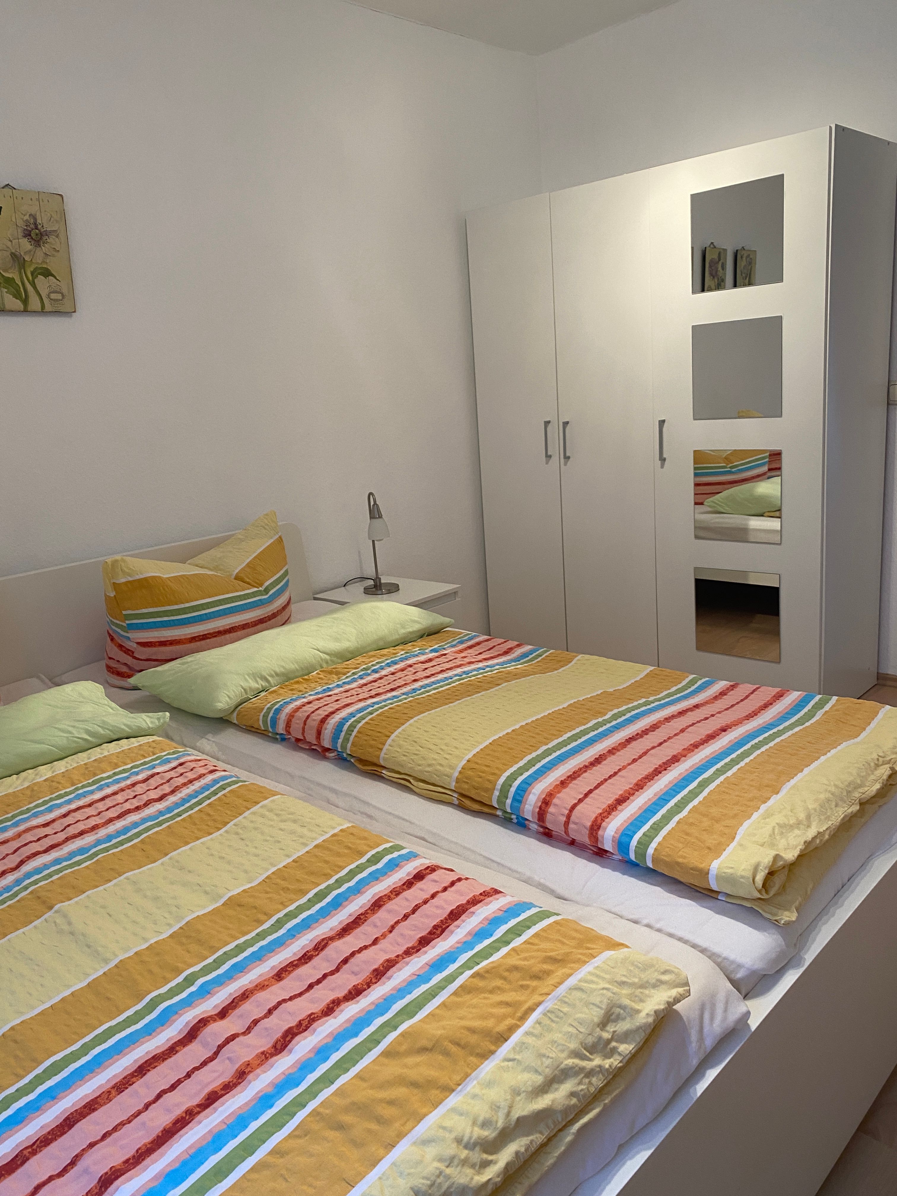 • Schlafzimmer: 1 Schlafraum mit Doppelbett (1,80 x 2,00 m), 1 Babybett/Aufbettung möglich