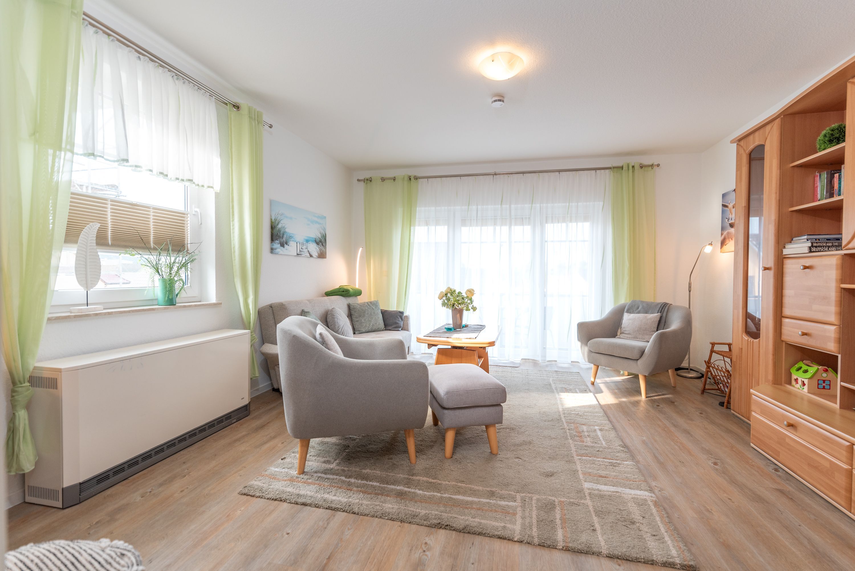 • Wohnzimmer: Ausgestattet mit einer gemütlichen Couch, modernem Flat-TV, DVD-Player und einer Musikanlage inklusive BluRay, bietet das Wohnzimmer einen idealen Ort zum Entspannen.