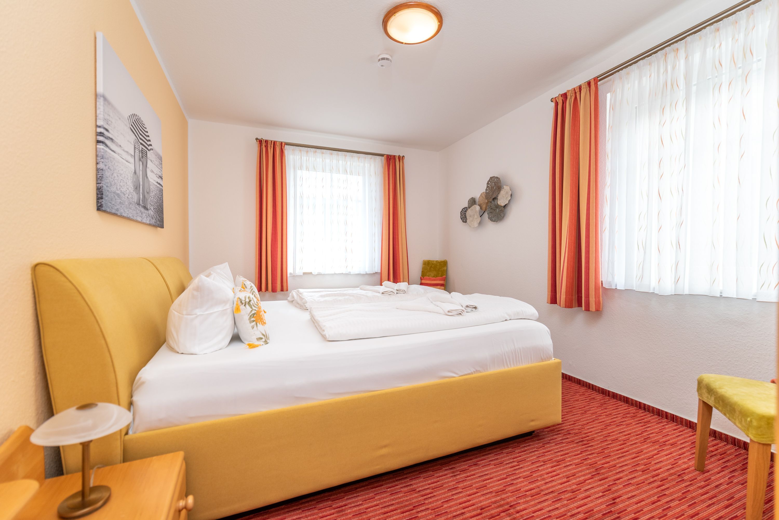 • Schlafzimmer mit Doppelbett und großem Kleiderschrank