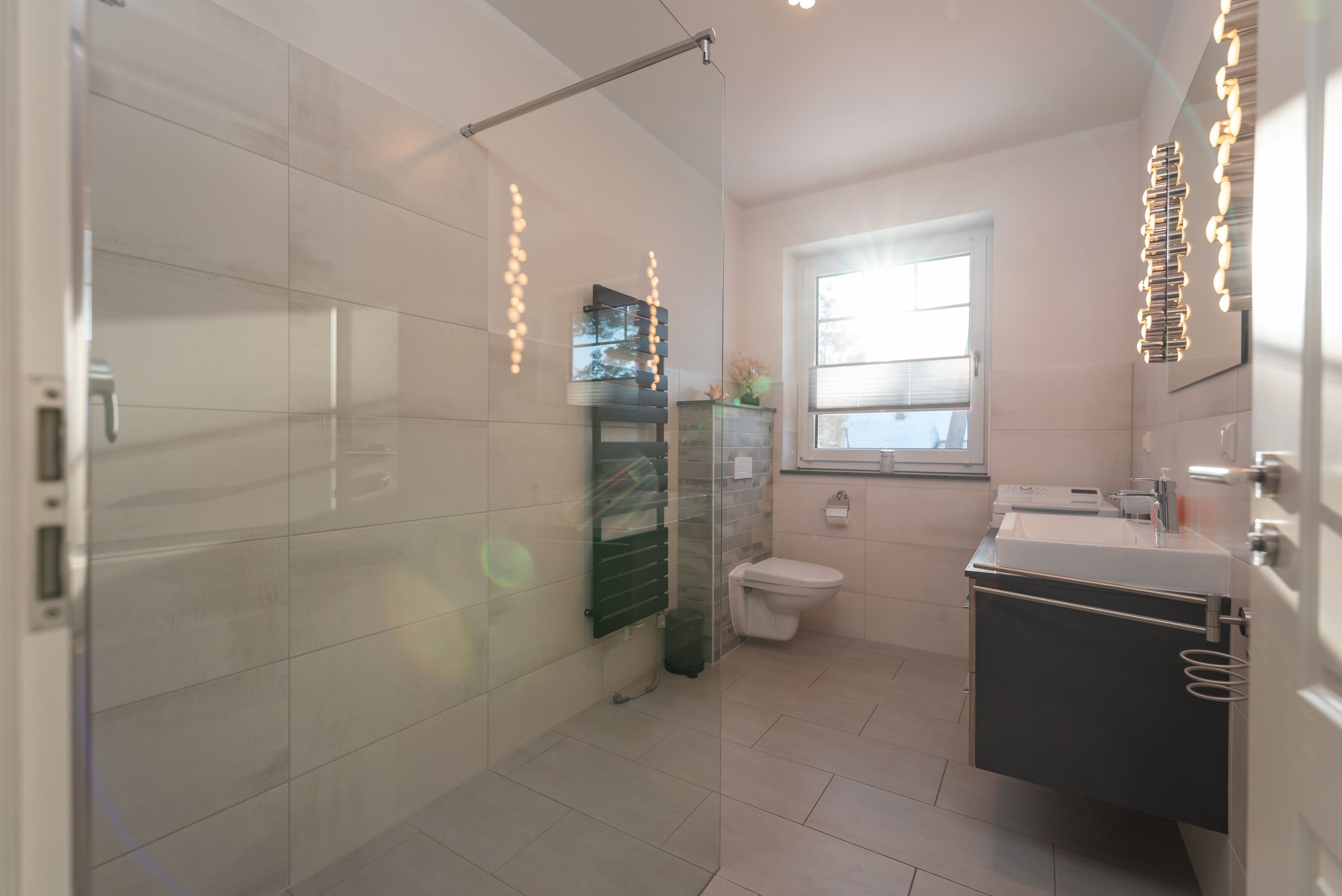 • Badezimmer mit dusche, WC und Waschmaschine im Obergeschoss