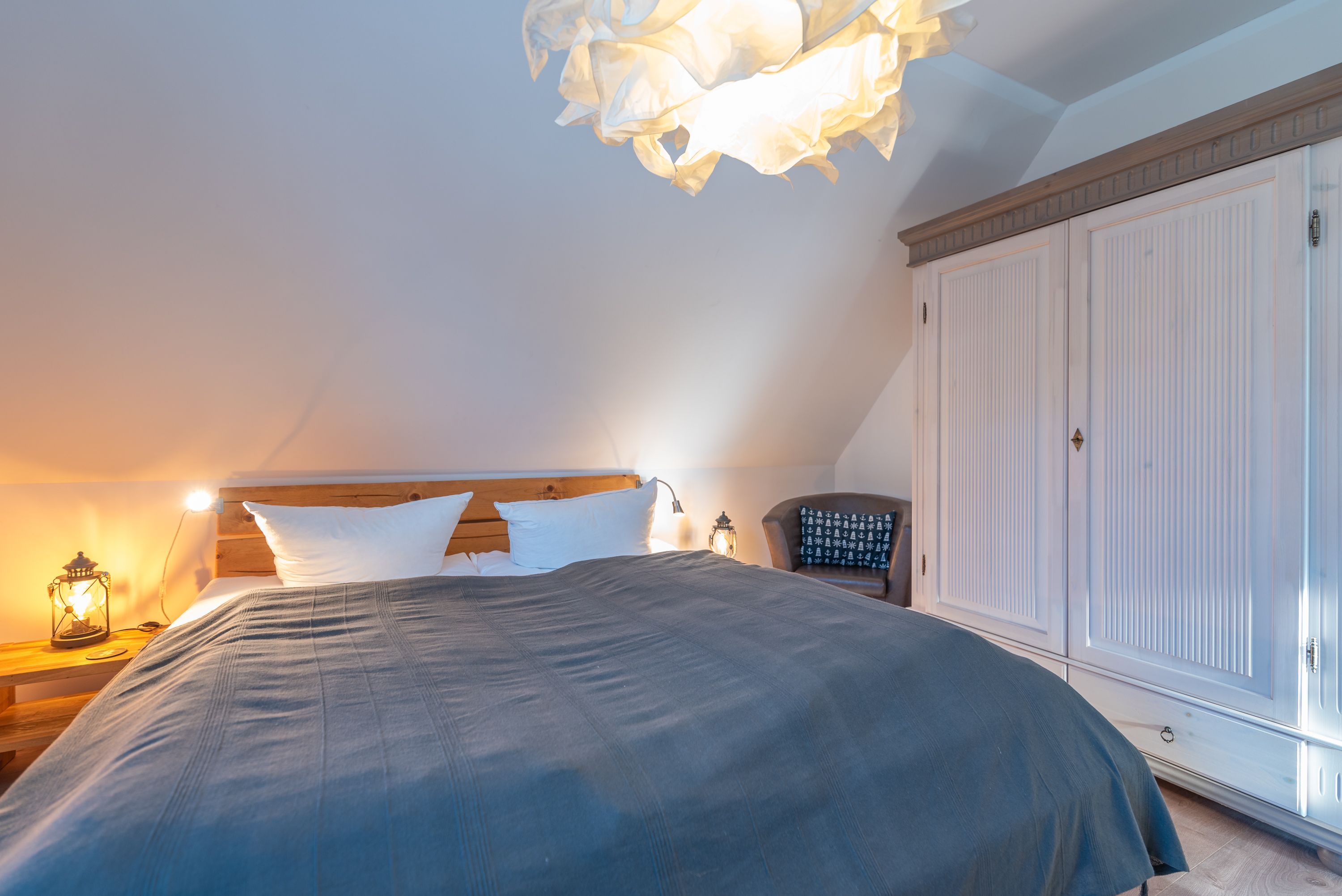 • Schlafzimmer 1 im Obergeschoss mit Doppelbett