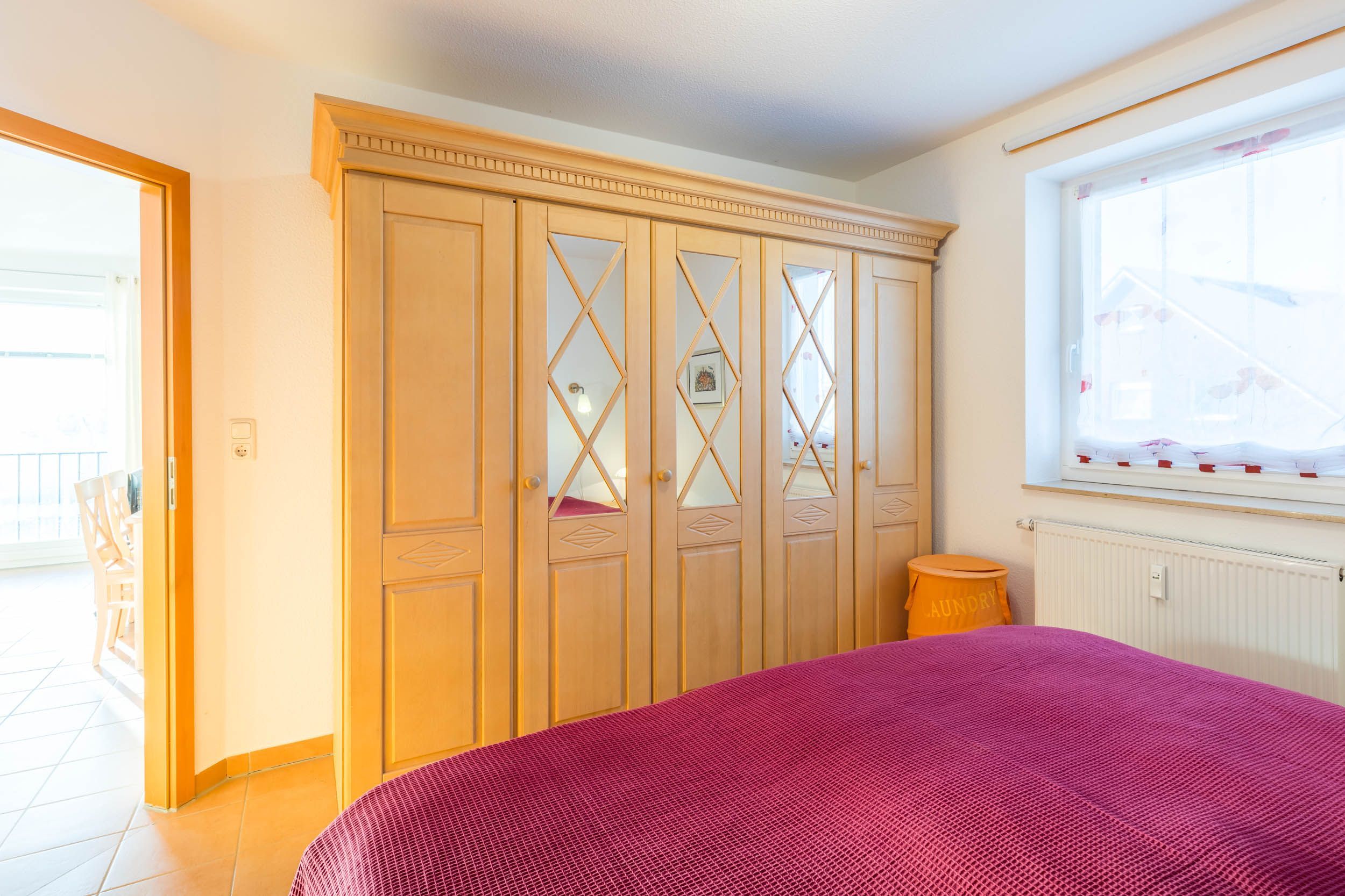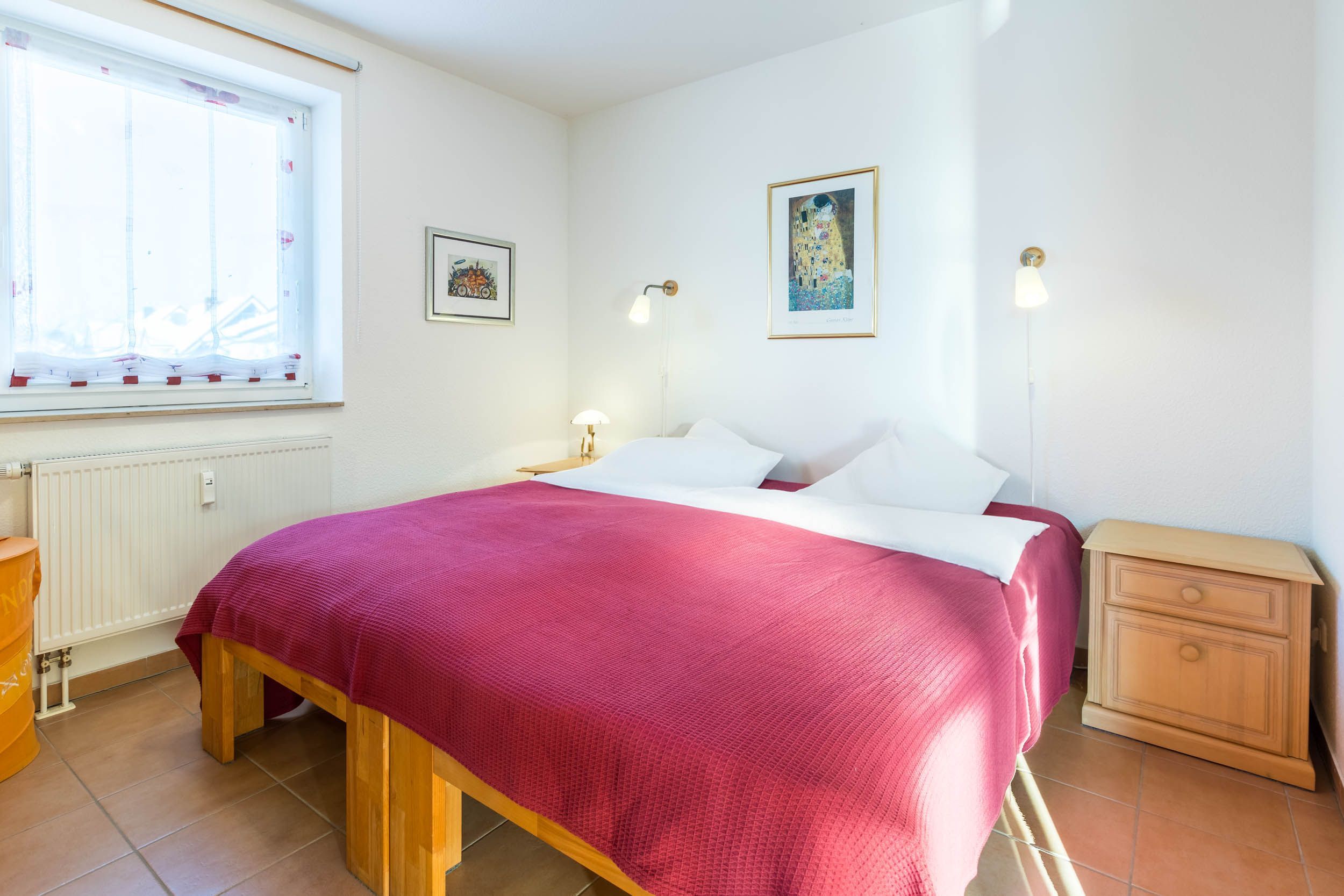 Das Schlafzimmer ist mit zwei Einzelbetten (können zusammengestellt werden) und einem geräumigen Kleiderschrank eingerichtet.