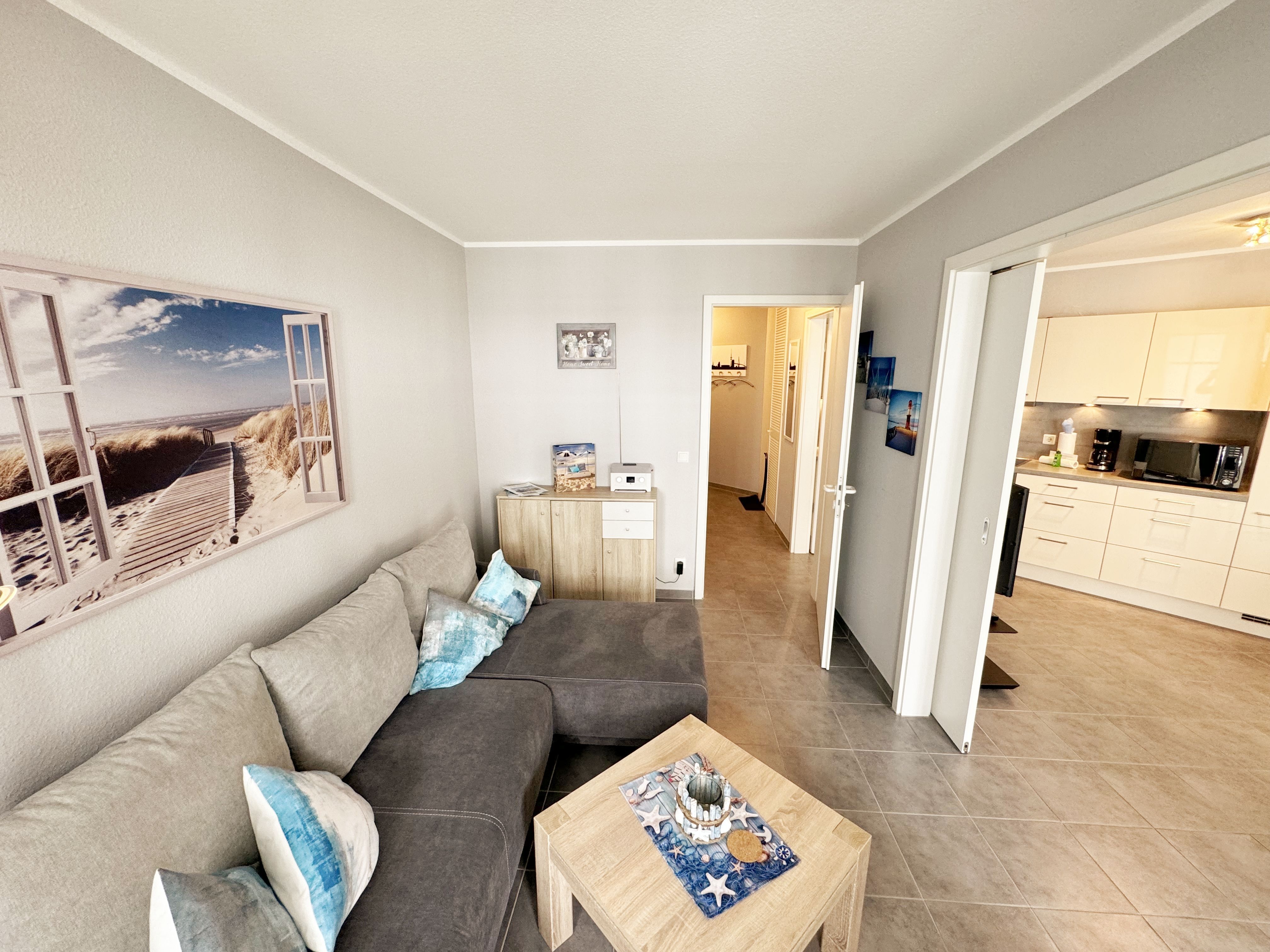 Das lichtdurchflutete Apartment Ostseetraum mit vielen bodentiefen Fenstern ist eine Nichtraucherwohnung und befindet sich in der 1. Etage des Hauses Mönchgut (Haus 14 /Nr. 624). Sie ist mit ca. 52m² komfortabel und geräumig und bietet Platz für max. 2 Erwachsene und 1 Kind bis 16 Jahre. In der Wohnung finden Sie eine offene Küchenzeile mit kombinierten Koch- und Essbereich. Die integrierte, moderne Küchenzeile lässt mit einer Mikrowelle mit Grillfunktion, 4 Zonen-Cerankochfeld mit ausziehbarer Umlufthaube, Backofen mit Umluft und Grill, Kühlschrank mit Eisfach, Geschirrspüler, Kaffeemaschine, Senseo Pad-Kapselmaschine, Toaster, Wasserkocher, Küchenwaage, Handmixer und anderen praktischen Helfern keine kulinarischen Wünsche offen. Der Essplatz mit einem Glastisch zum Ausziehen und Schwingstühlen rundet diesen Bereich ab. Der angrenzende Wohnbereich ist mit einer Kommode, einer Stehlampe, einem Couchtisch und einer Couch mit Schlaffunktion (1,40m x 2,00m) eingerichtet. Abgerundet wird der Wohnbereich mit einem DAB - Internet Radio sowie ein flexiblen TV-Board mit Smart-TV. Erfreuen Sie sich an einer kleinen Auswahl an Gesellschaftsspielen. Auch auf einen Internetanschluss (W-LAN) müssen Sie im Urlaub nicht verzichten. Dieses ist inklusive. Der bestuhlte Balkon (Nordwest) mit Sonnenschirm und einem Weber Elektrogrill können Sie vom Wohn,- Essbereich sowie vom Schlafzimmer erreichen. Das Schlafzimmer ist mit einem Doppelbett (1,80m x 2,00m), Nachttischablage mit dazugehörigen Leselampen und einem geräumigen Kleiderschrank mit Safe ausgestattet. Ein kleines Highlight bietet das Schlafzimmer, welches über einen zweiten kleinen Balkon verfügt. Das Bad ist mit einer Badewanne mit Duschfunktion, einer Waschmaschine und einem Waschplatz mit Spiegelschrank und einem Fön ausgestattet. Das separate WC verfügt zusätzlich über einen kleinen Waschplatz. Im Apartment befindet sich im Flurbereich ein Einbauschrank. Darin befinden sich Staubsauger, Wäscheständer, Bügeleisen mit Bügelbrett und Reinigungsutensilien. Ein eigener PKW-Stellplatz (Nr. 20) befindet sich in der Tiefgarage (Einfahrtshöhe 1,80 m) des Hauses. Im Untergeschoss befindet sich der Kellerbereich (Nr. 624) er ist mit einer Steckdose 230 Volt ausgestattet, so das Sie Ihre eigenen E-Bikes und Fahrräder hier laden können. Maximal 2 Hunde sind bei uns gegen eine Gebühr Herzlich willkommen! Die Erstausstattung eines Wäschepaketes (komplette Bettwäsche, 1 Duschhandtuch, 2 kleine Handtücher) können Sie bis 14 Tage vor Anreise gegen einen Aufpreis dazu buchen oder durch eigenes Ergänzen. Ab 2 gebuchten Paketen erhalten Sie einmalig 1 Geschirrhandtuch und 1 Duschvorleger hinzu.