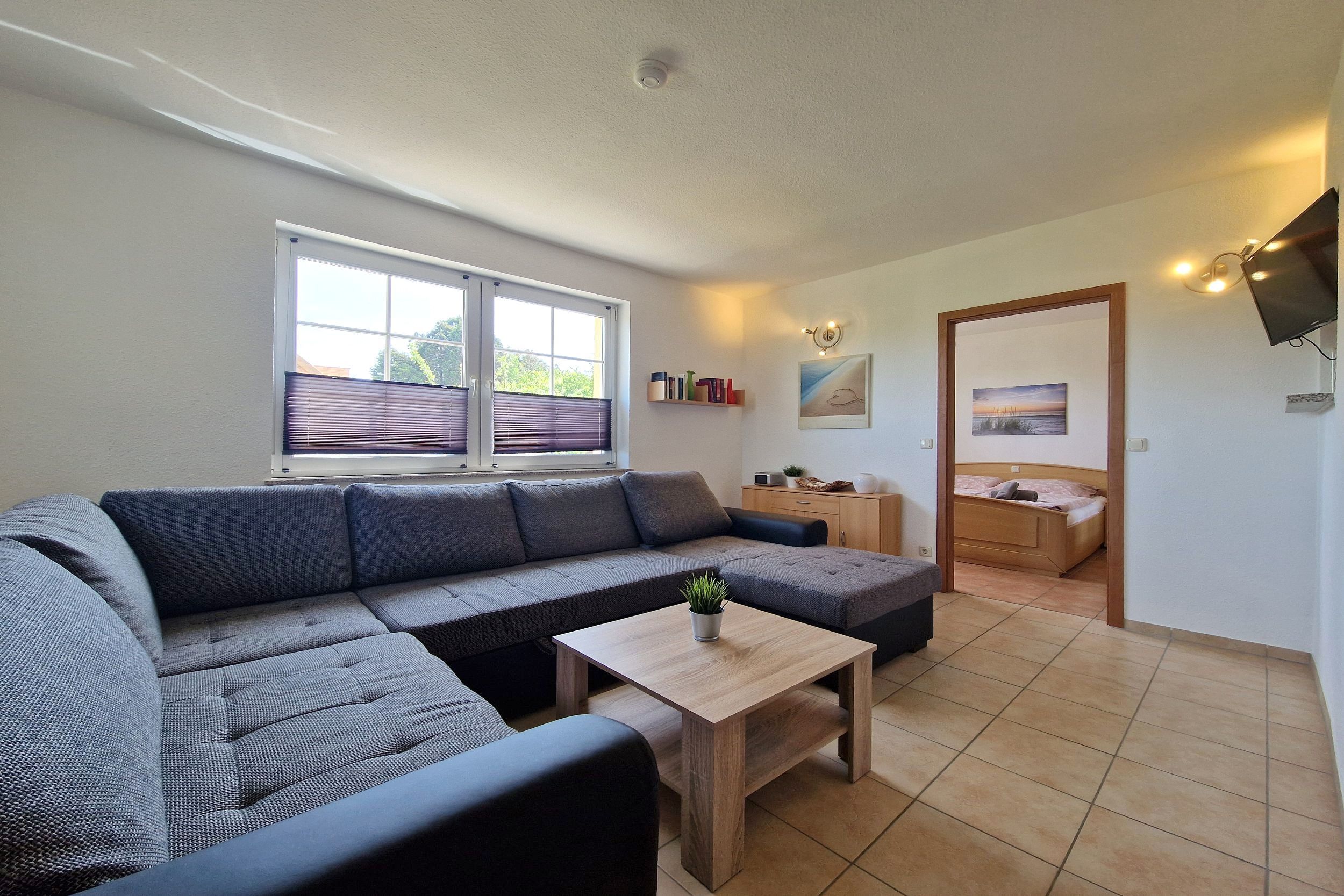 • WOHNEN: Wohnraum mit bequemer Schlafcouch, Flachbild-TV