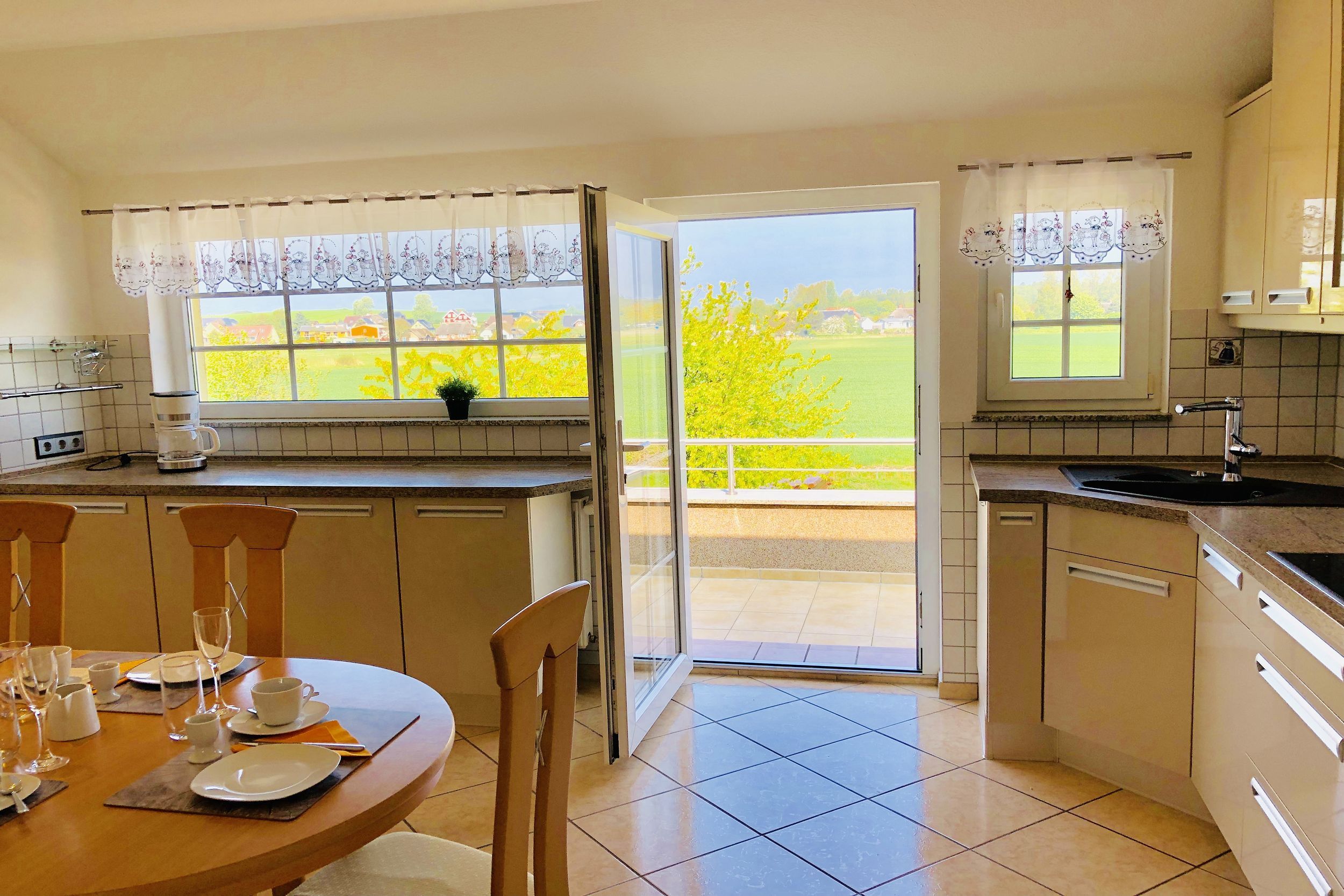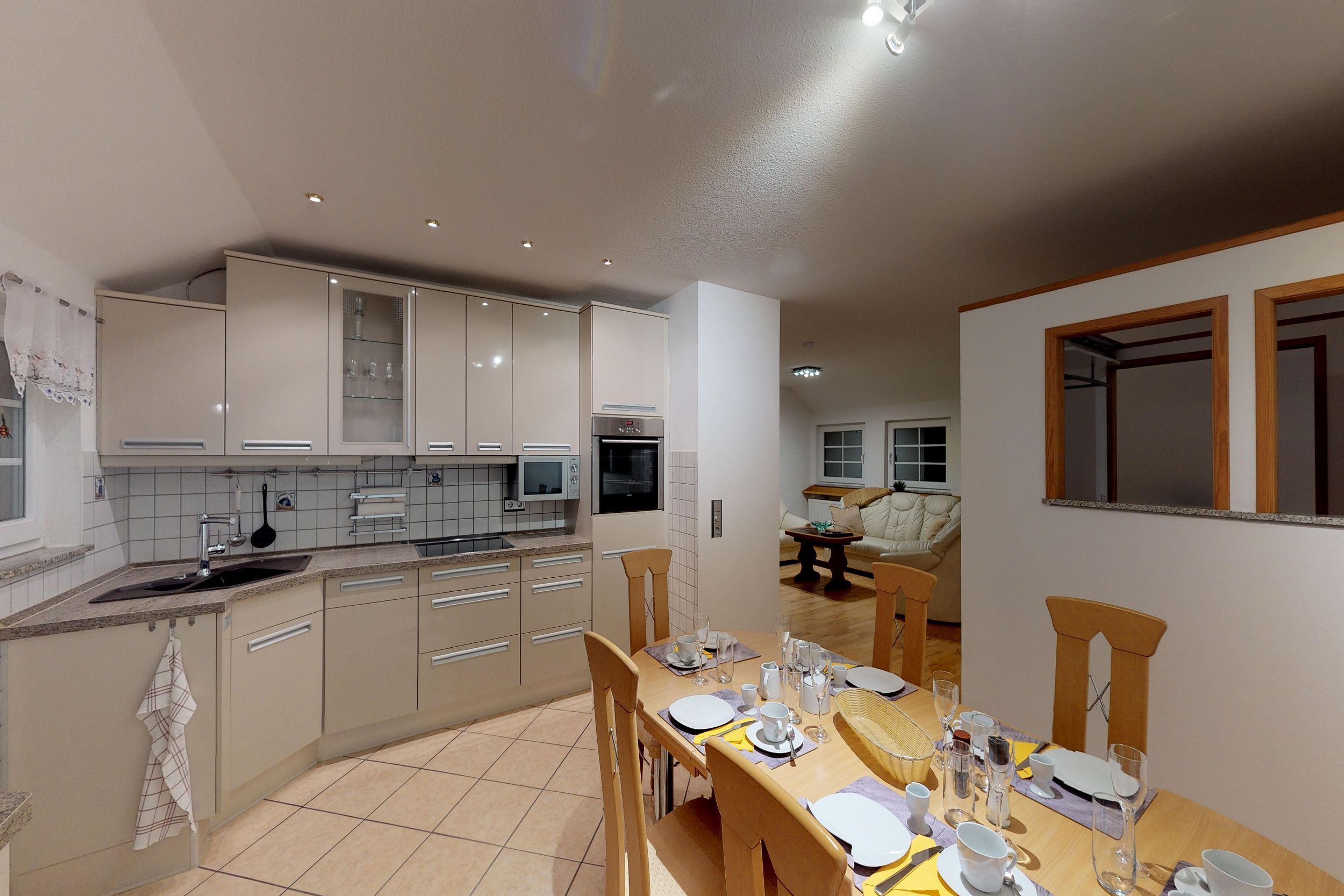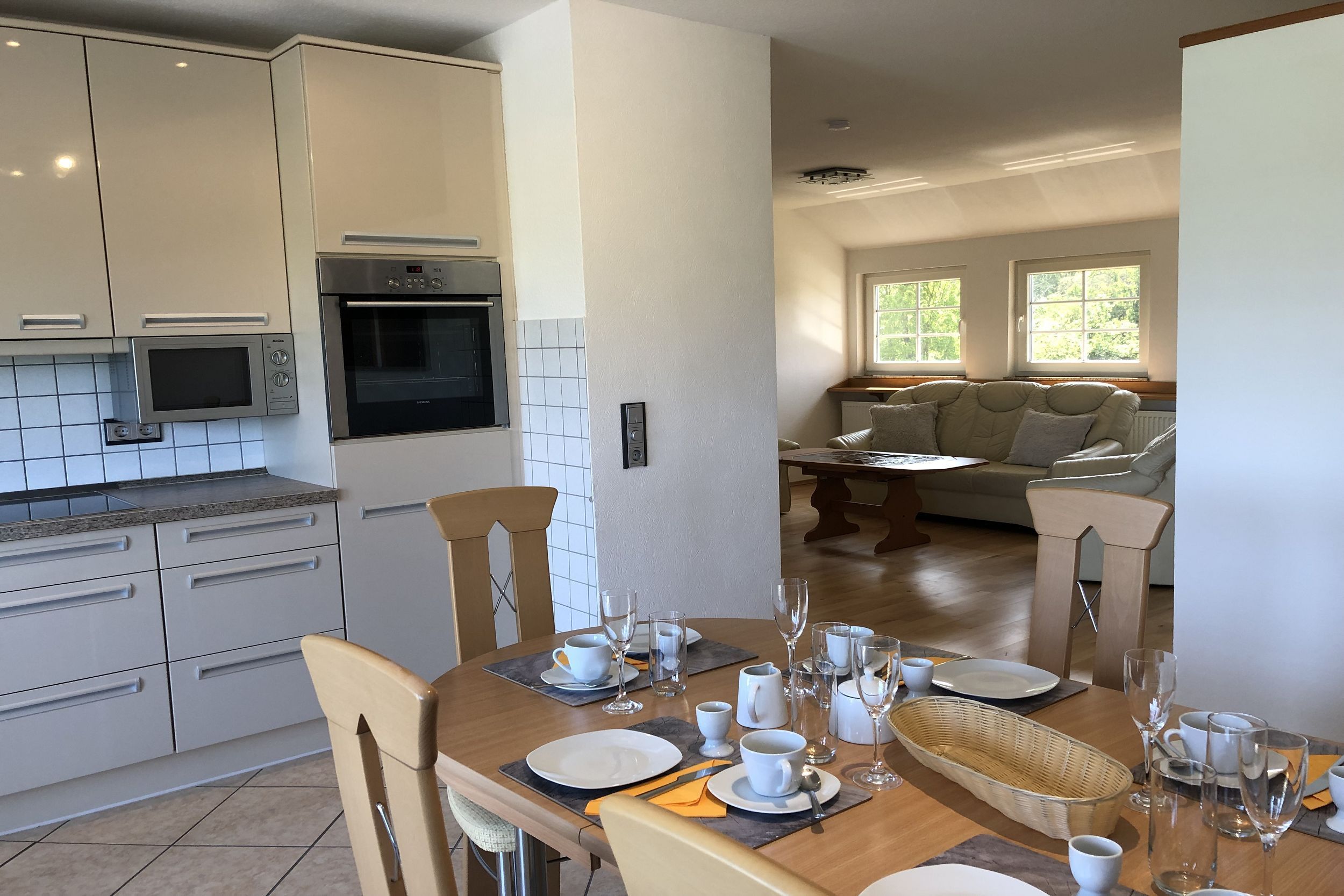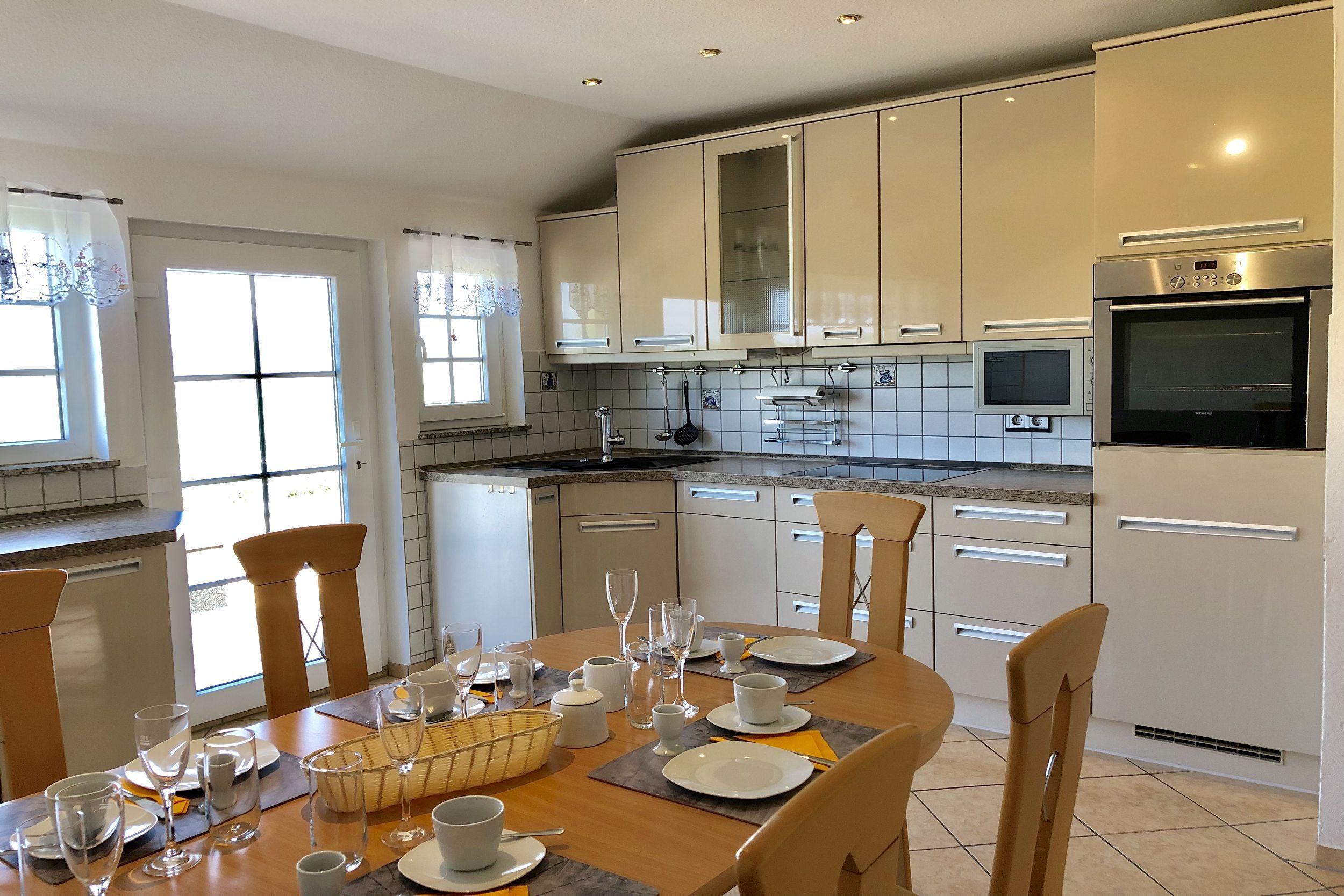 • KÜCHE: separate Küche mit Essbereich, 4-Felder Ceranherd und Backofen, Spülmaschine, Mikrowelle, Kühlschrank, Toaster, Wasserkocher, Kaffeemaschine, reichlich Besteck, Geschirr und Küchenutensilien
