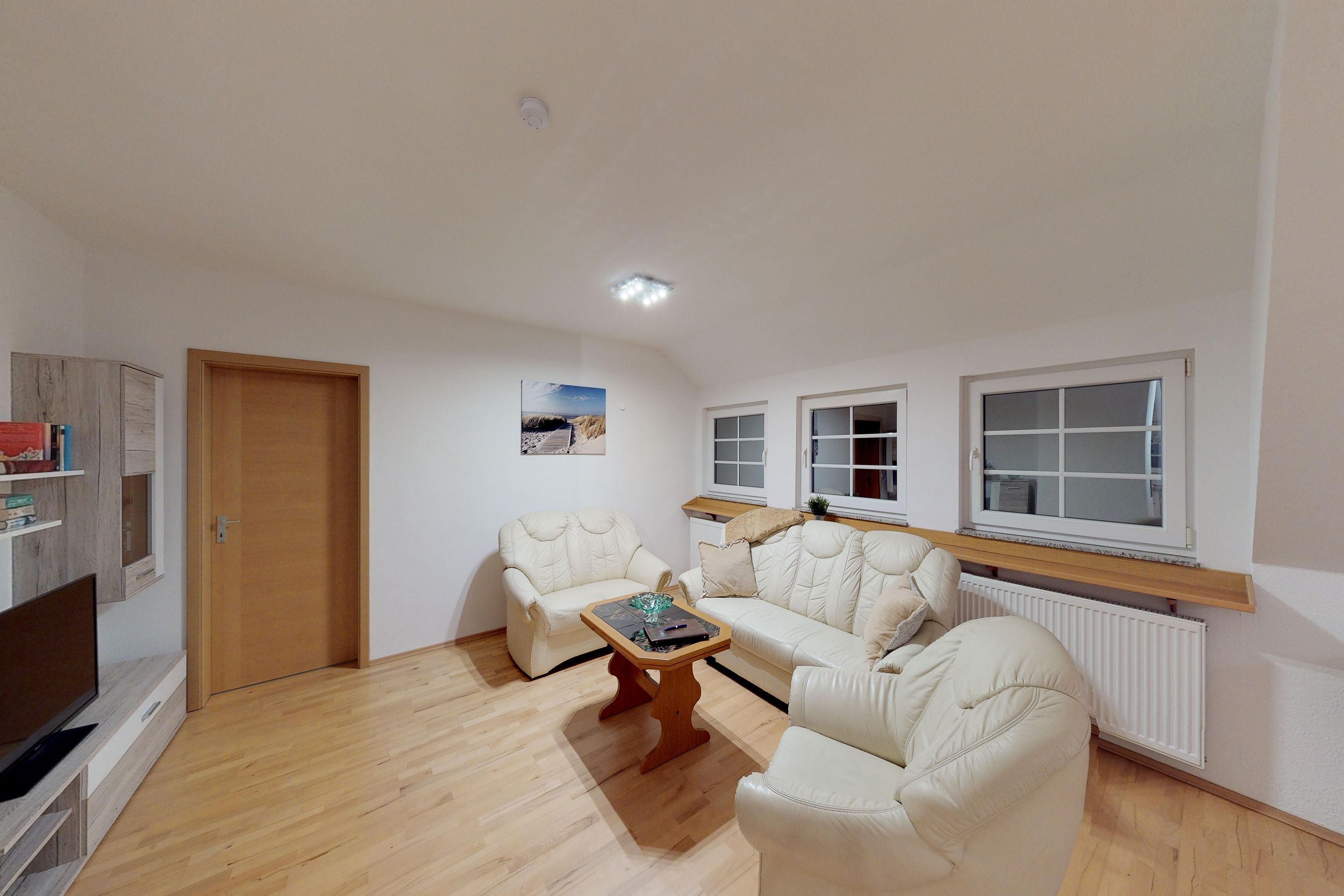 • WOHNEN: Wohnraum mit gemütlicher Couchgarnitur und Flachbild-TV