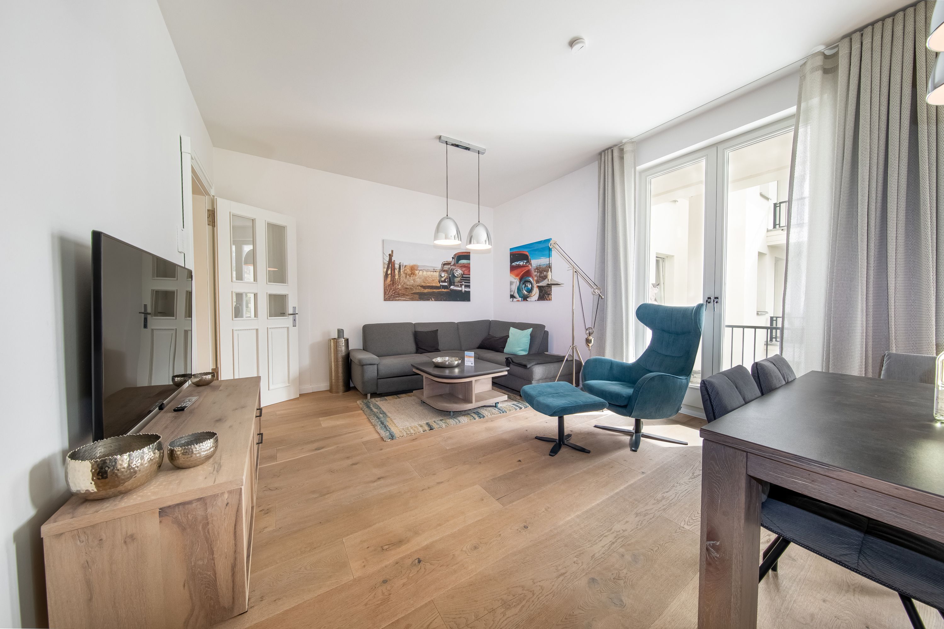 Die Ferienwohnung FIRST Strandperle befindet sich im 2. Stock des Hauses FIRST Sellin und bietet auf rund 75m² Wohnfläche Platz für maximal 4 Personen. Sie verfügt über ein Schlafzimmer und einem Badezimmer, wodurch hier Platz für die ganze Familie vorhanden ist. Zur Ausstattung gehört ein Tiefgaragenstellplatz, um Ihr Auto sicher unterzubringen. Die modern eingerichtete Küchenzeile ist mit einer Spülmaschine ausgestattet und verfügt über ein hochwertiges BORA Kochfeld.