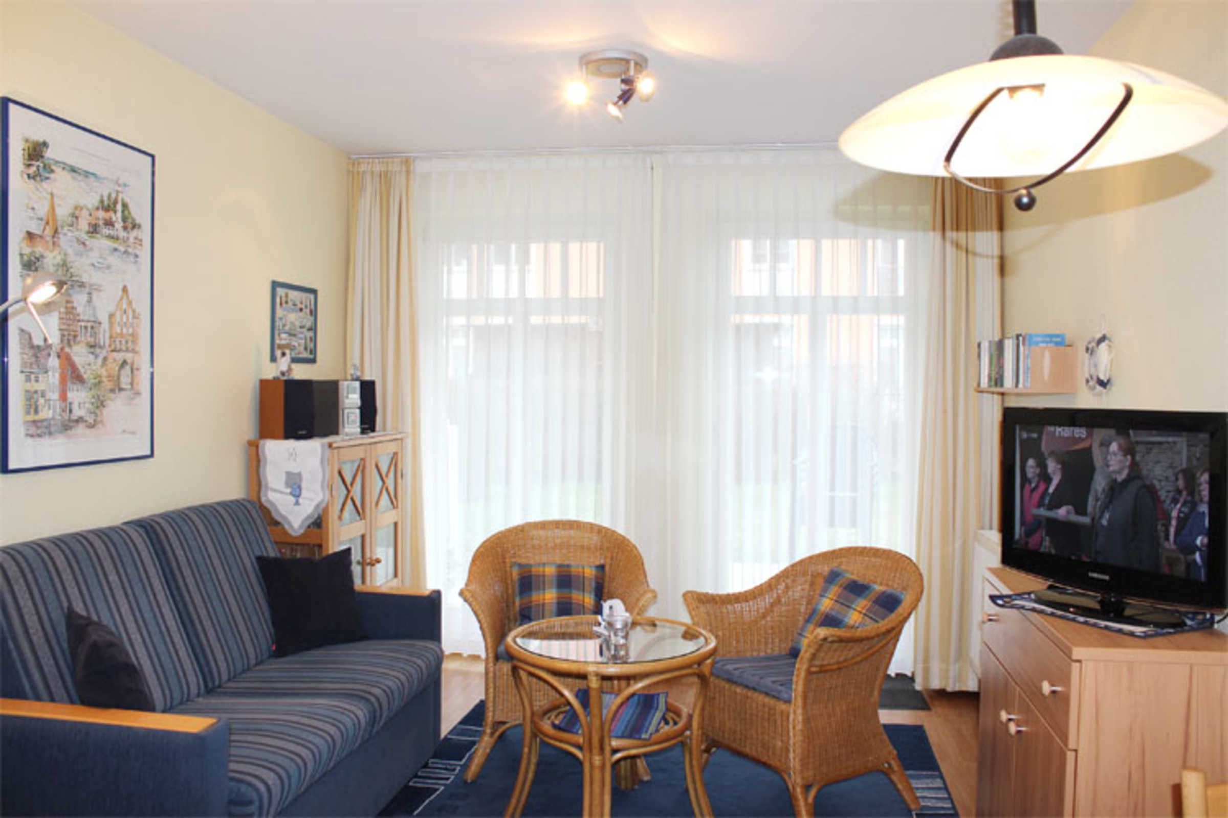 - WLAN-Bereitstellung kostenfrei (ohne Gewähr) - Wohn/Schlafbereich mit Schlafcouch, integrierter Küche und Essplatz