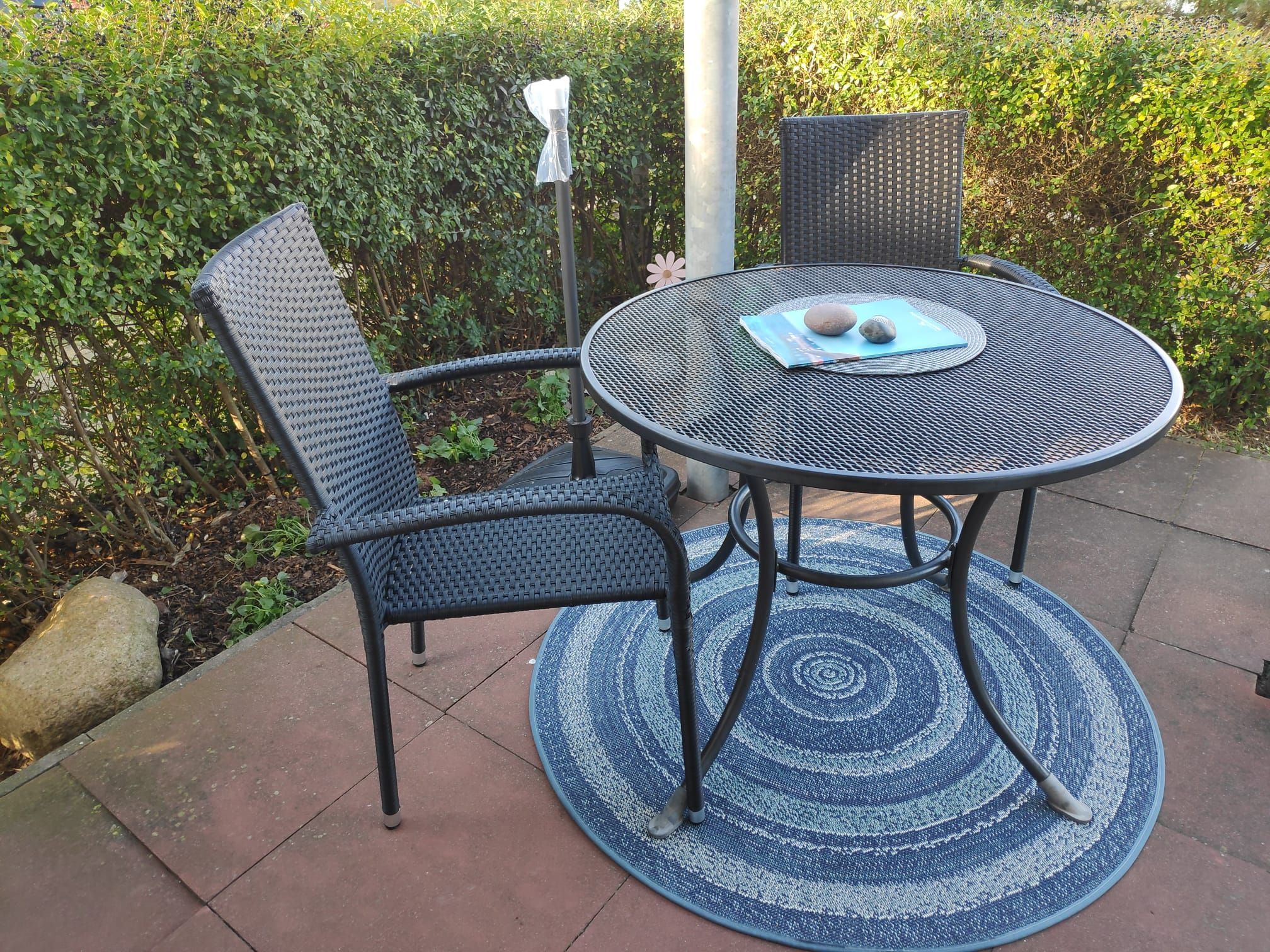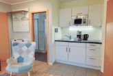 - Küchenzeile mit Herd/Microwelle, Kühlschrank, Wasserkocher, Kaffeemaschine, Toaster und Essplatz