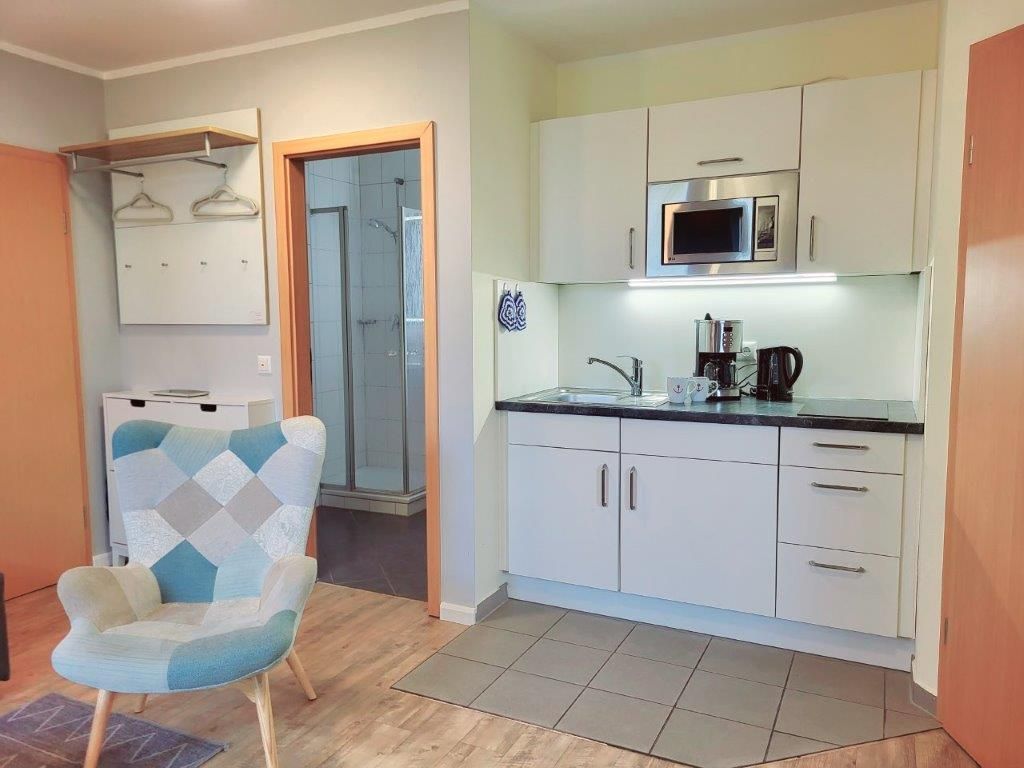 - Küchenzeile mit Herd/Microwelle Kühlschrank, Wasserkocher, Kaffeemaschine, Toaster und Essplatz